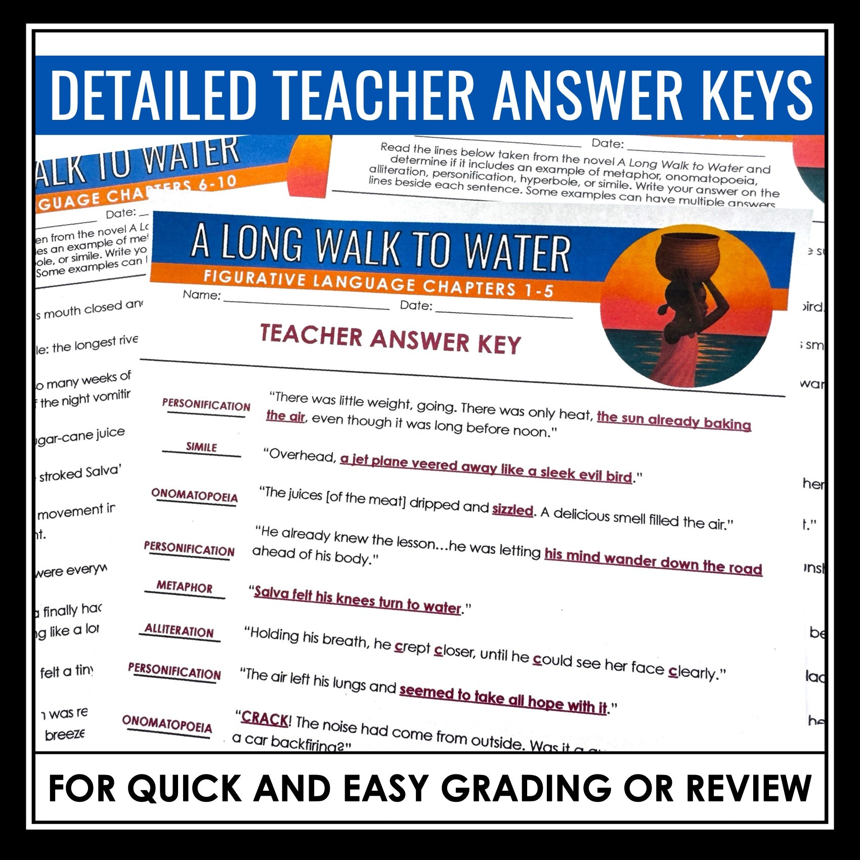 A Long Walk to Water Figurative Language Assignments and Answer Keys