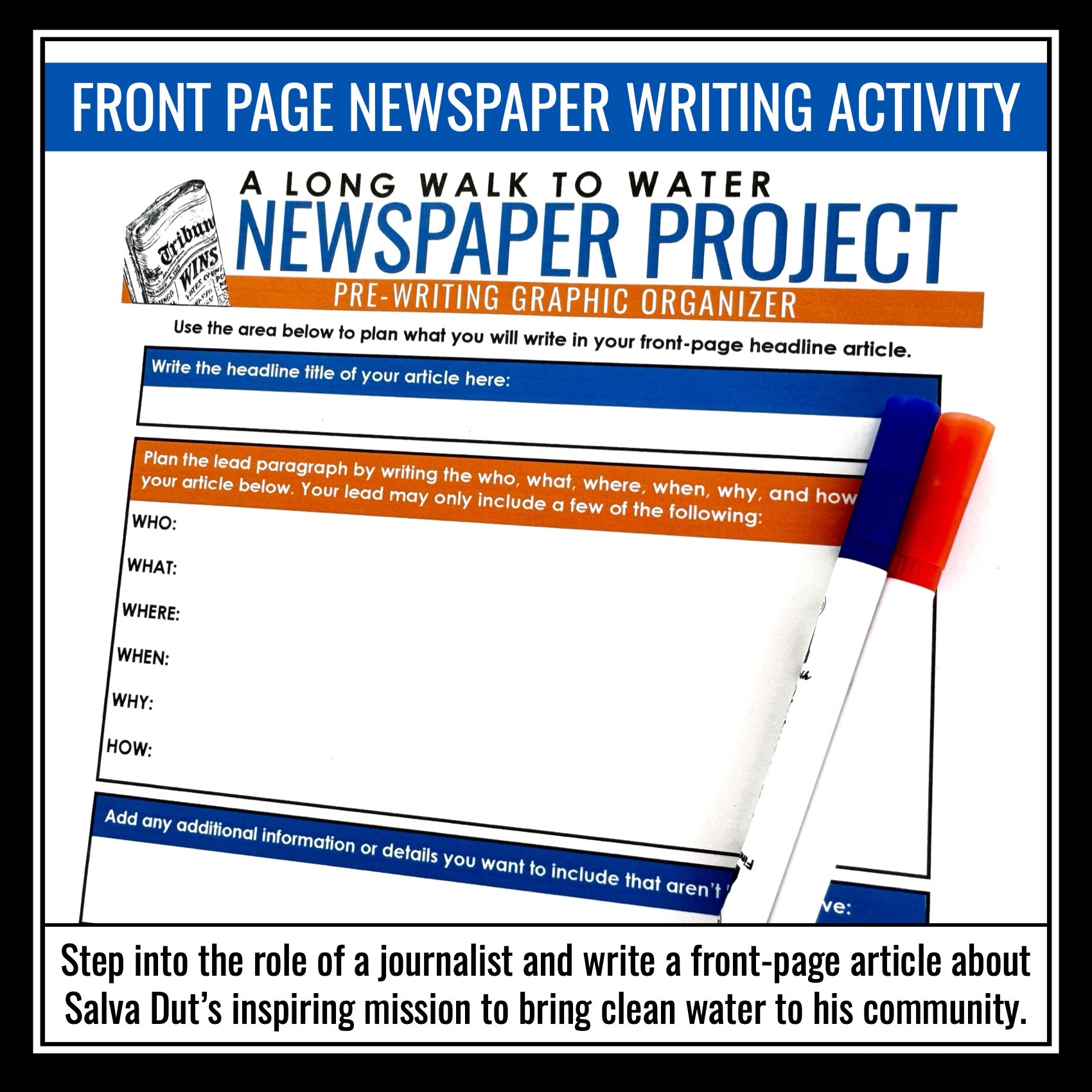 A Long Walk to Water – Front Page Newspaper Writing Lesson & Creative Activity
