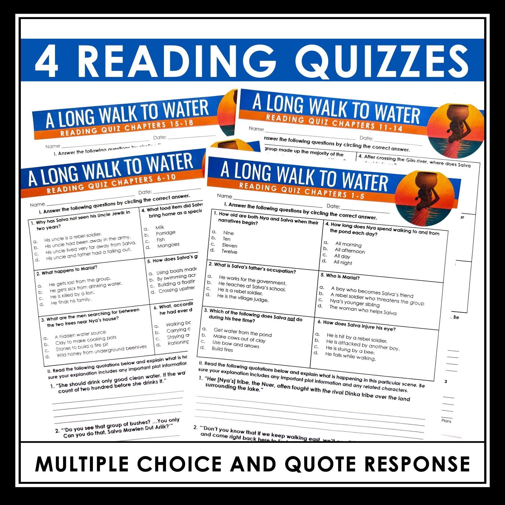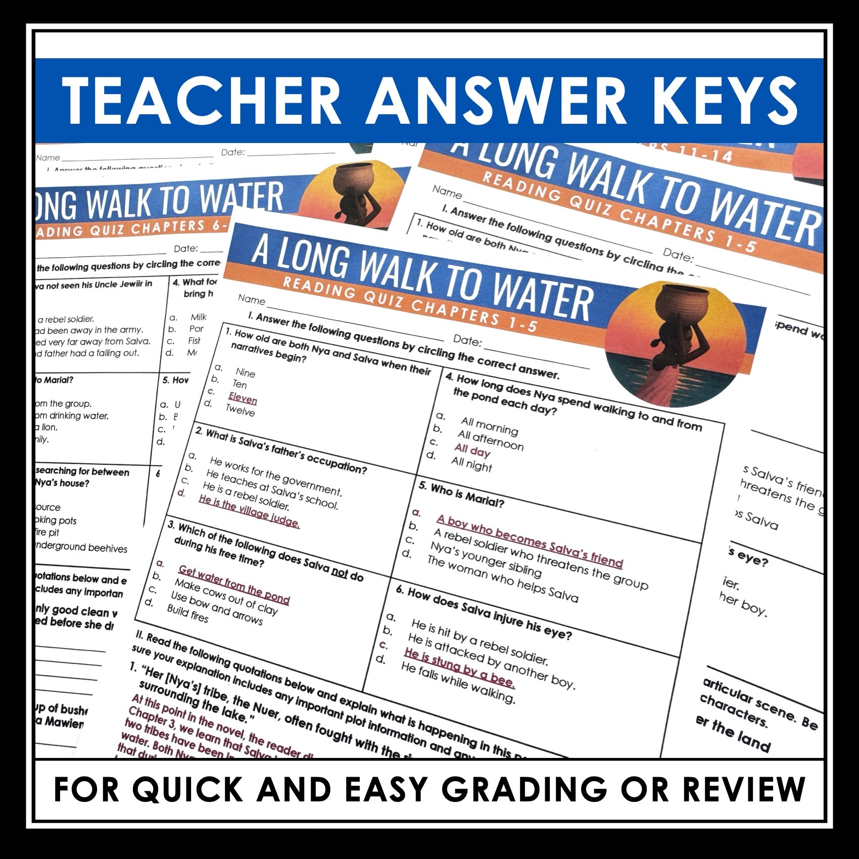 A Long Walk to Water Quizzes - Multiple Choice and Quote Quizzes - Answer Key