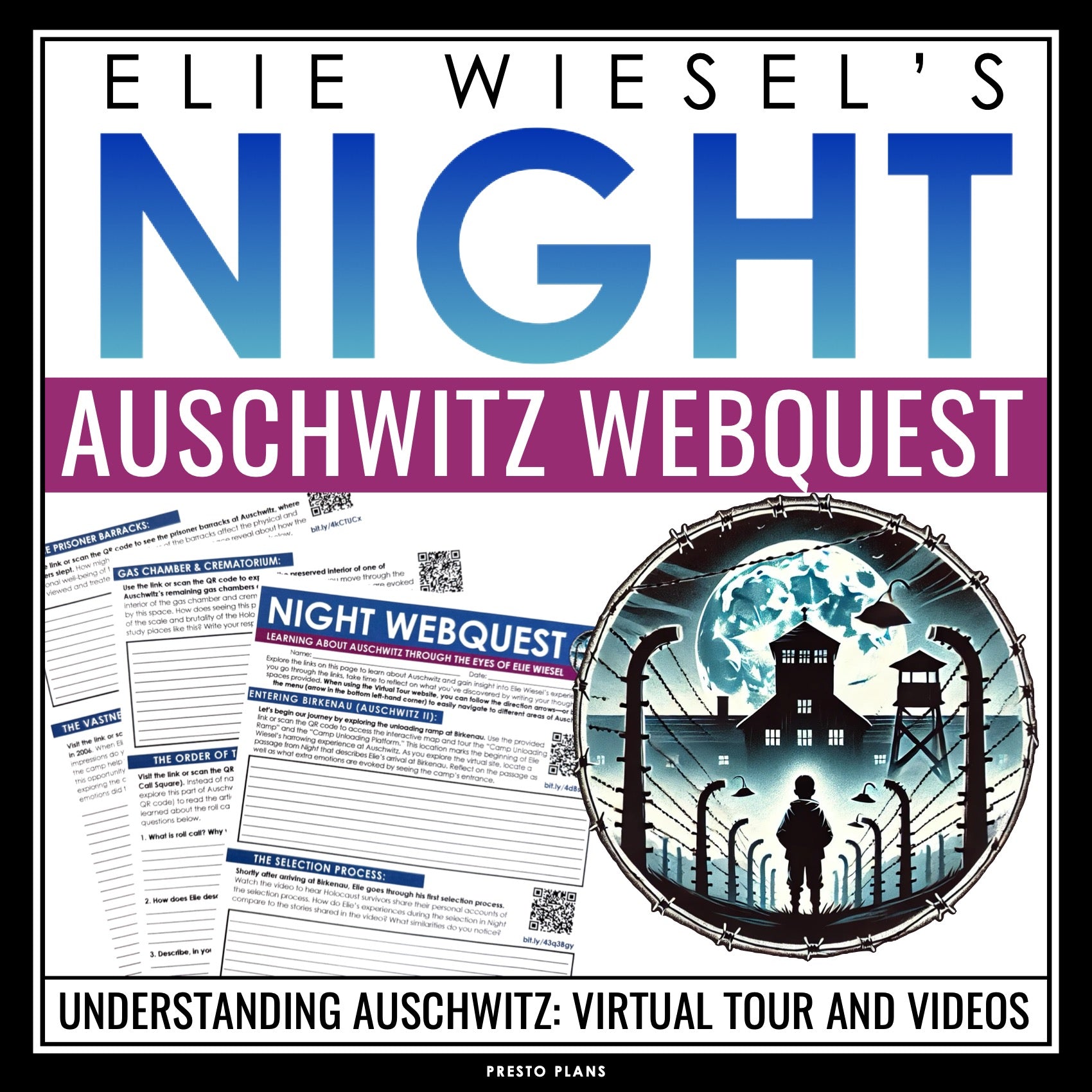Night by Elie Wiesel Activity - Auschwitz WebQuest Historical Context Assignment: Bring the historical setting of Night by Elie Wiesel to life with this immersive Auschwitz Night WebQuest that guides students through virtual tours, survivor accounts, and nonfiction resources connected to Elie Wiesel’s experiences. Students explore the physical spaces described in the memoir—including the unloading ramp, roll call square, gas chambers, and barracks—while reflecting on quotes from the text and survivor stories. This activity deepens historical understanding of the Holocaust while reinforcing key moments from Night. This webquest is intended to be completed after students have read the entire memoir.