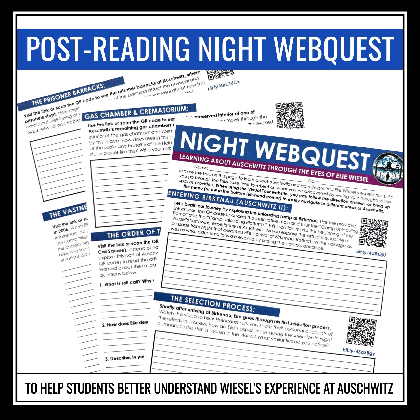- Assign the WebQuest after reading Night to help students contextualize the memoir and Auschwitz with real-world imagery and survivor voices