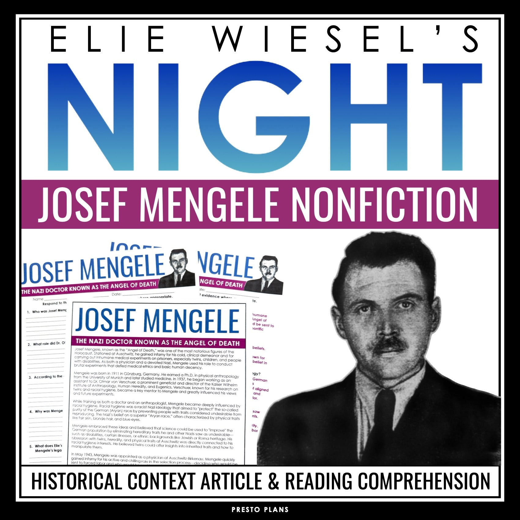 Night by Elie Wiesel - Josef Mengele Historical Context Article and Assignment