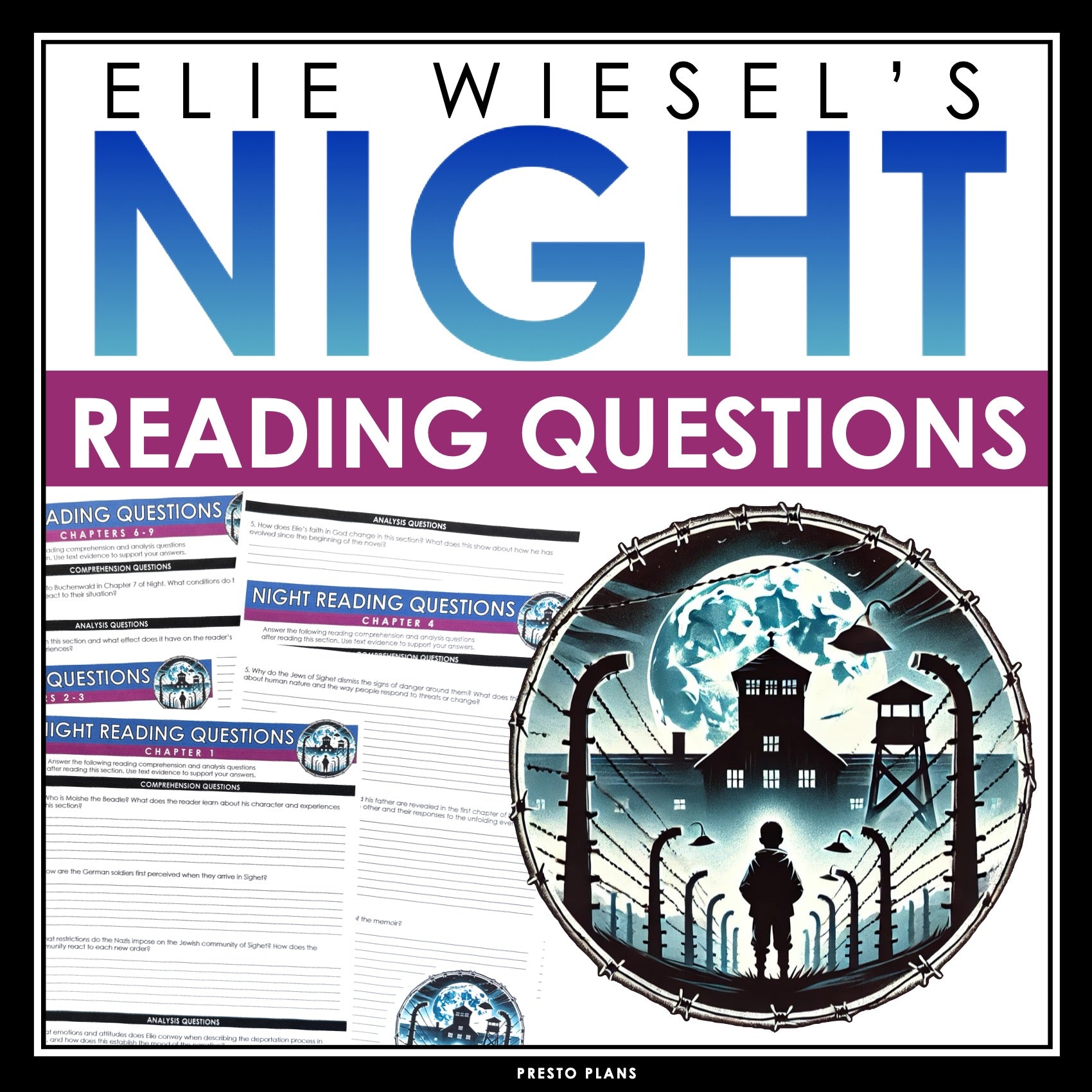 Night by Elie Wiesel Questions - Comprehension and Analysis Chapter Questions: This resource includes ready-to-use questions that will check your students' comprehension and challenge them to analyze literary elements in Night by Elie Wiesel. This resource features questions organized by chapter sets that cover comprehension and analysis. A presentation is also included to review the answers with your class. The answer keys are detailed and supported with text evidence and direct quotes.