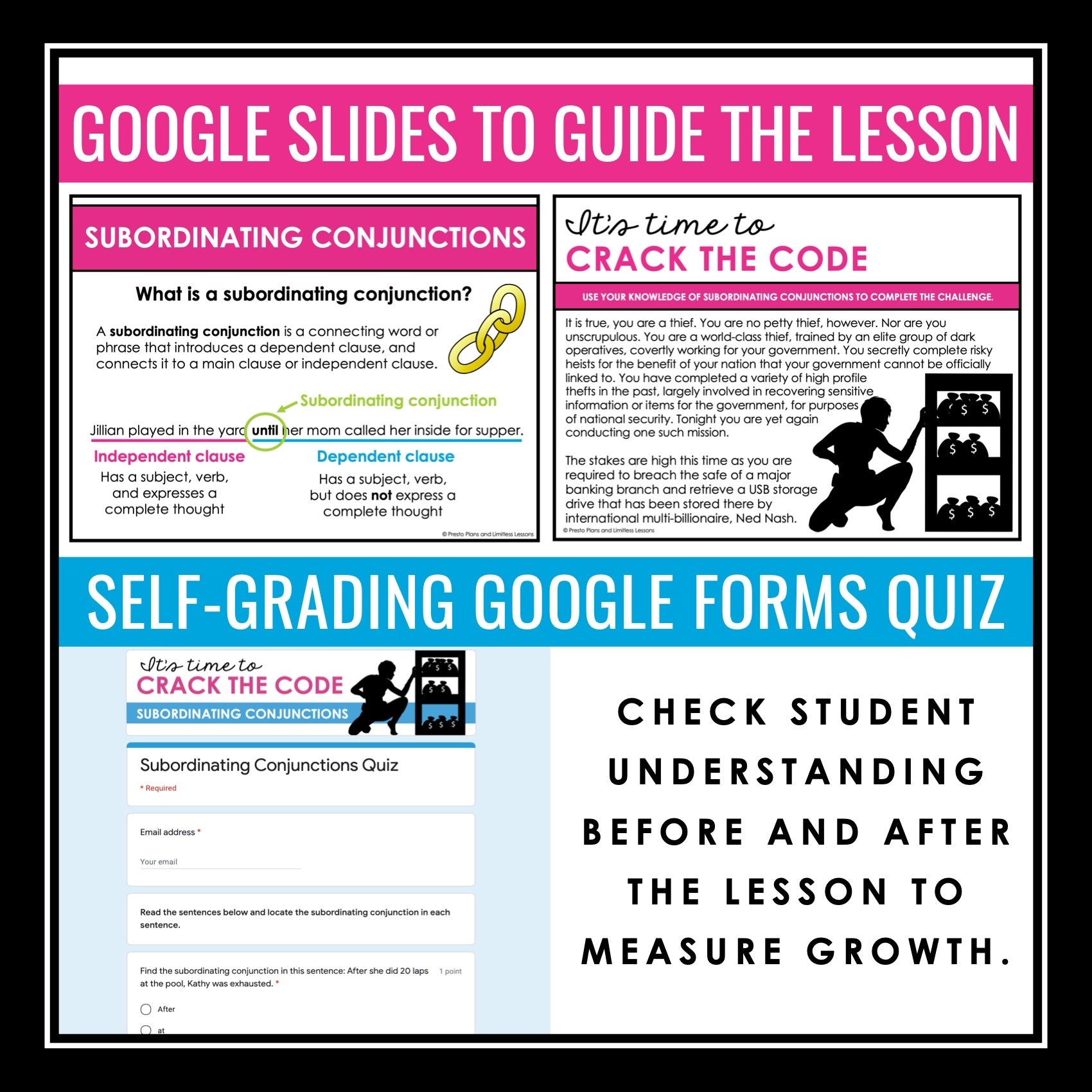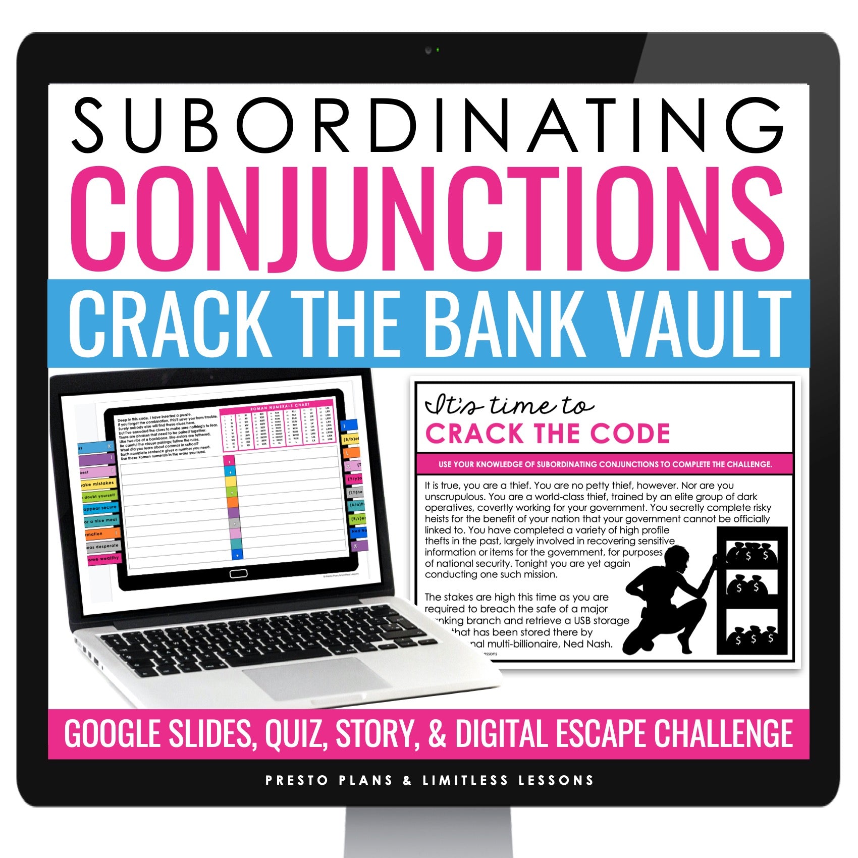 Subordinating Conjunctions Escape Room Grammar Digital Activity, Slides & Quiz