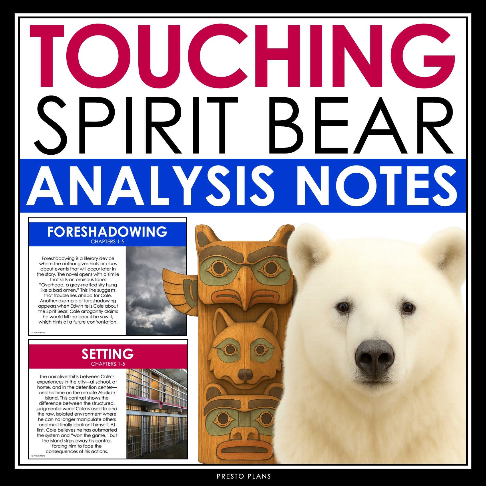 ➡️ Touching Spirit Bear Analysis Notes Presentation: This 49-slide PowerPoint includes key insights and examples drawn directly from the novel, organized by chapter sections. Use it to guide literary analysis and class discussions as students explore Touching Spirit Bear.