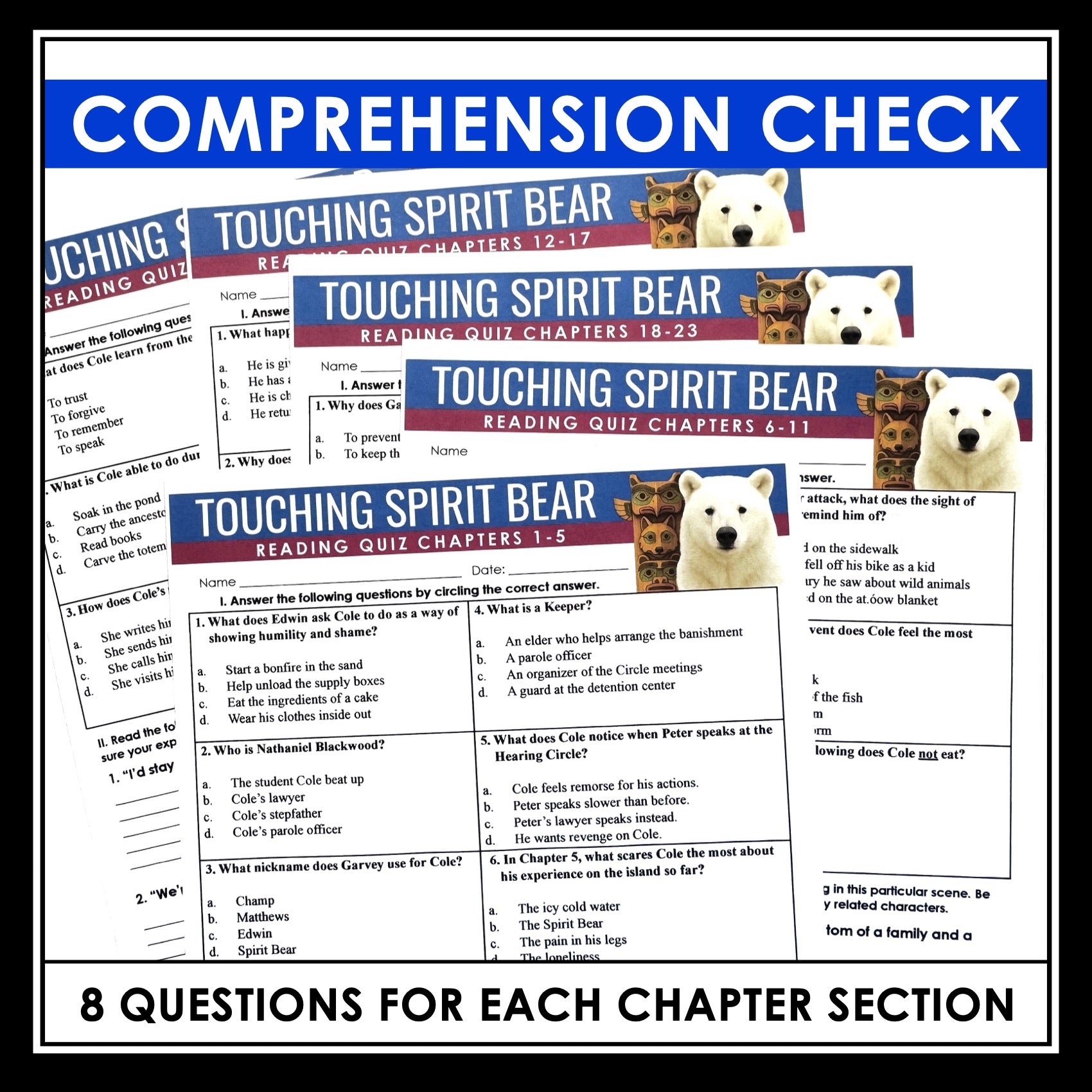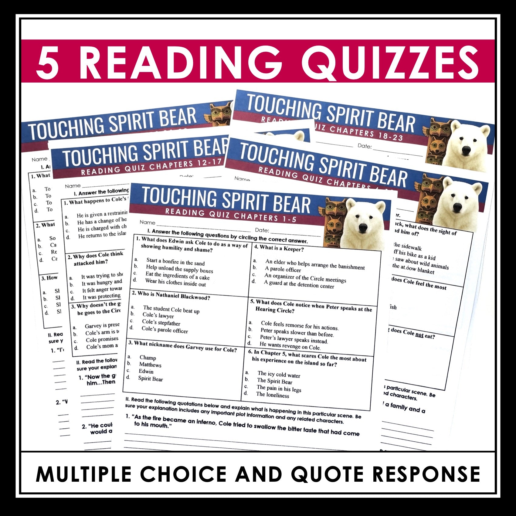 ➡️ Touching Spirit Bear Quizzes: This resource contains five quizzes that assess comprehension at different points in the novel. Each quiz includes: