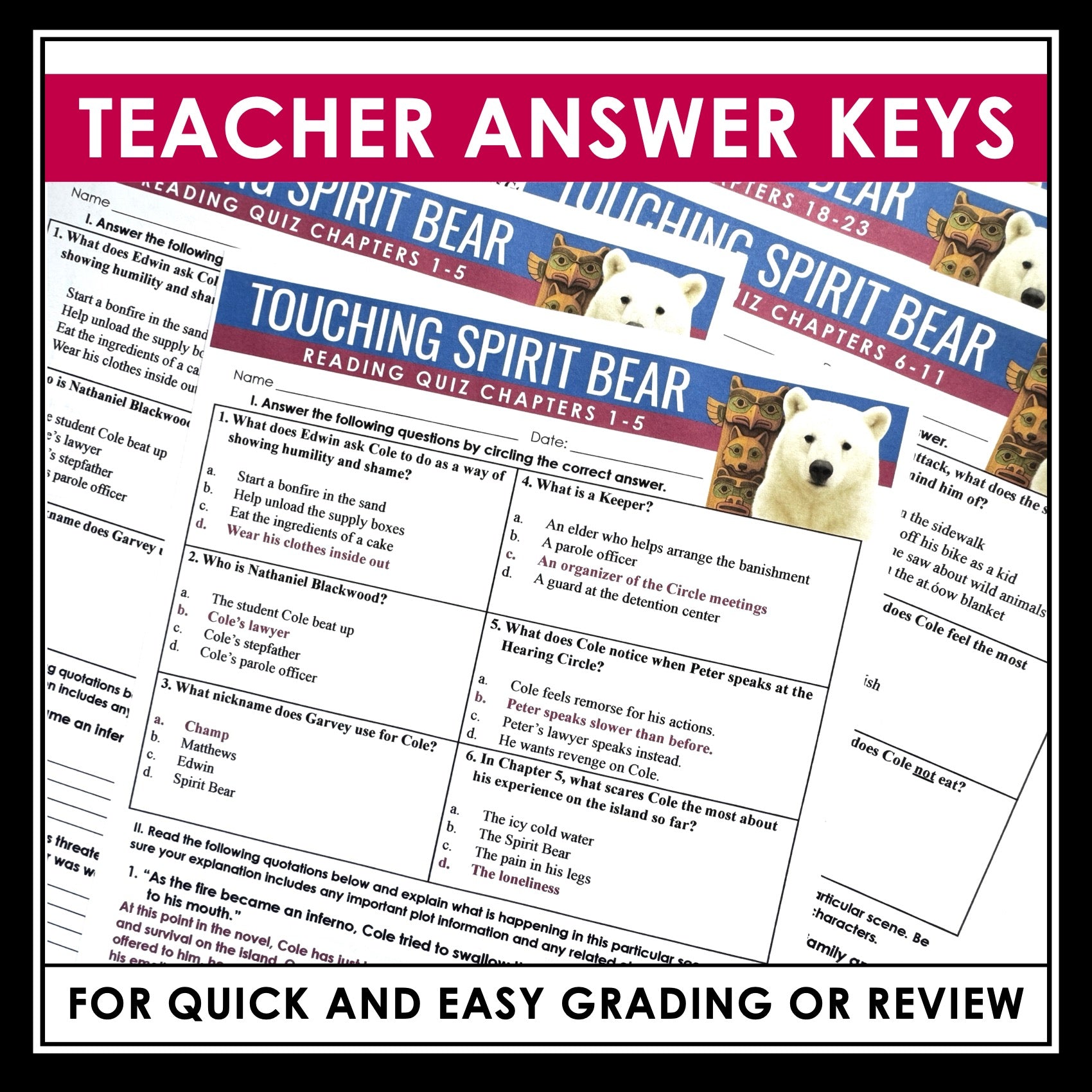 Touching Spirit Bear Quizzes - Multiple Choice and Quote Quizzes - Answer Key