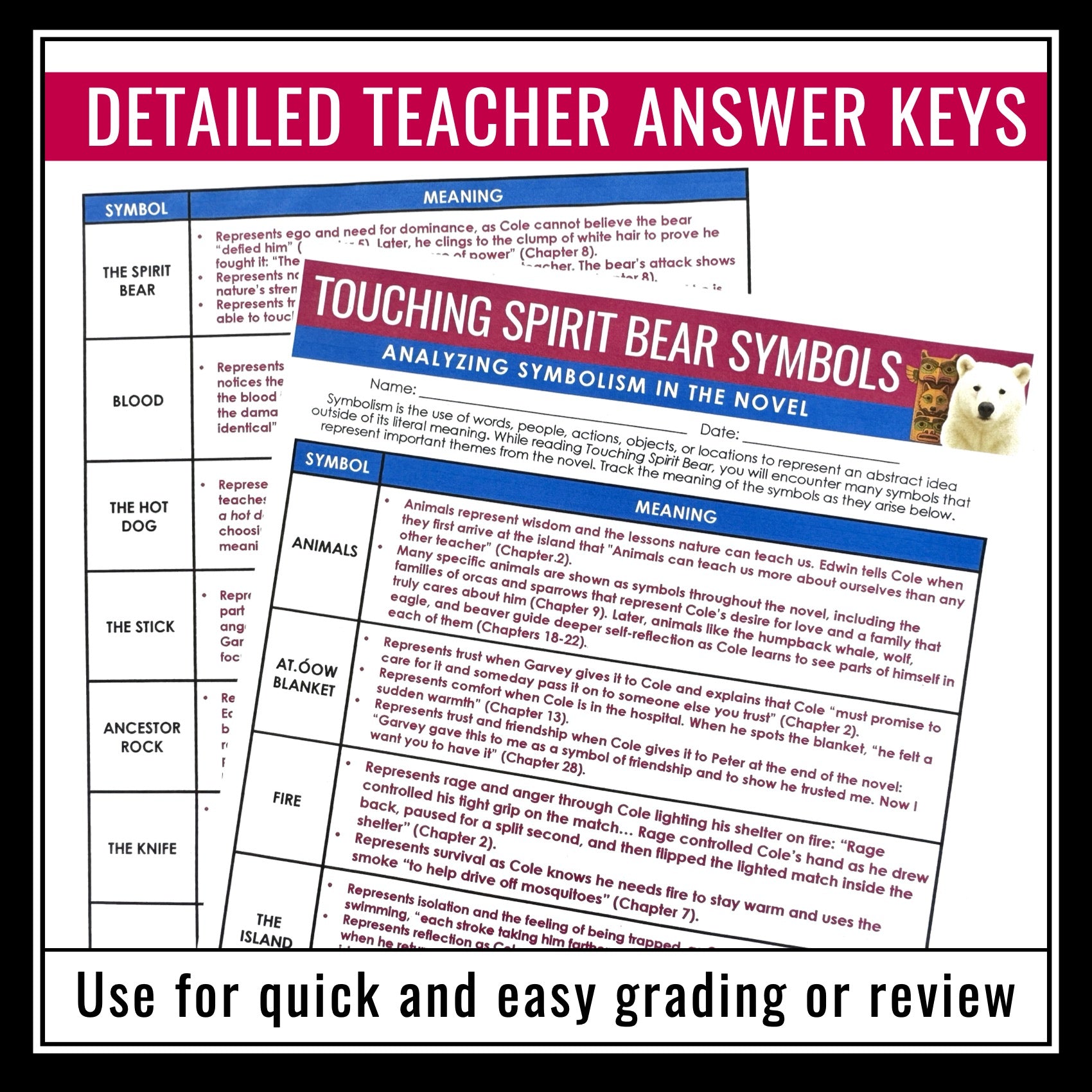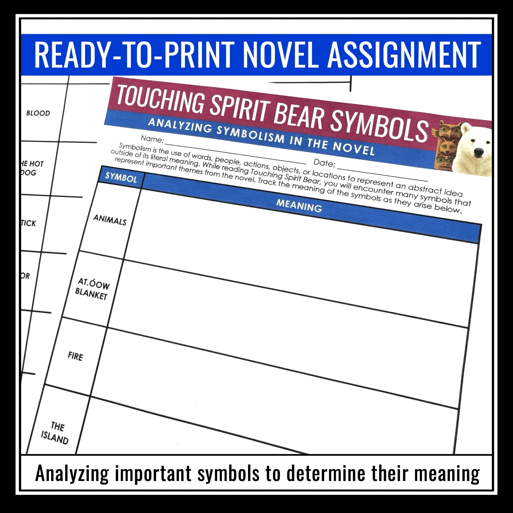 Touching Spirit Bear Symbolism Assignment - Analyzing Symbols in the Novel: Help your students dive deeper into Touching Spirit Bear by Ben Mikaelsen with this symbolism assignment. Symbolism is central to the novel, and this ready-to-use assignment allows students to explore the deeper meanings behind the Spirit Bear, the at.óow blanket, fire, animals, and other important objects and motifs.