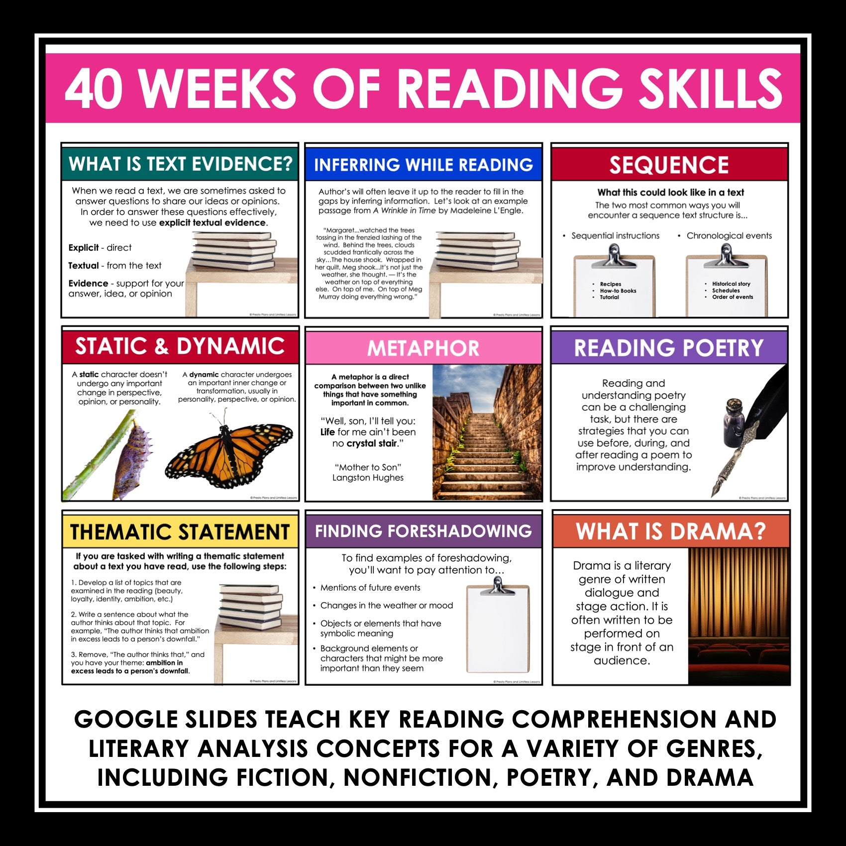 ➡️ Google Slides: Each reading concept comes with a comprehensive presentation that breaks the concept down with detailed examples and guides you through each element of the lesson and activity. The slides help you: