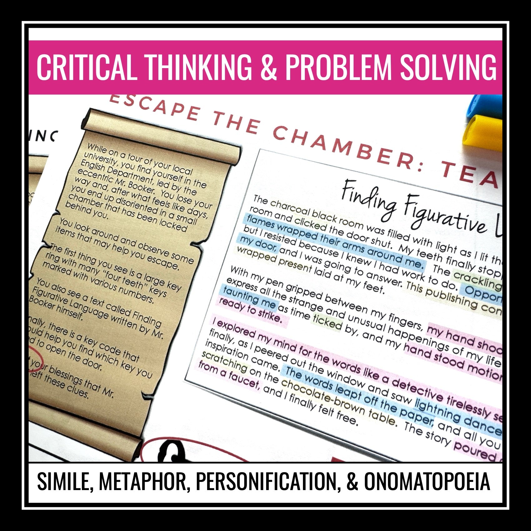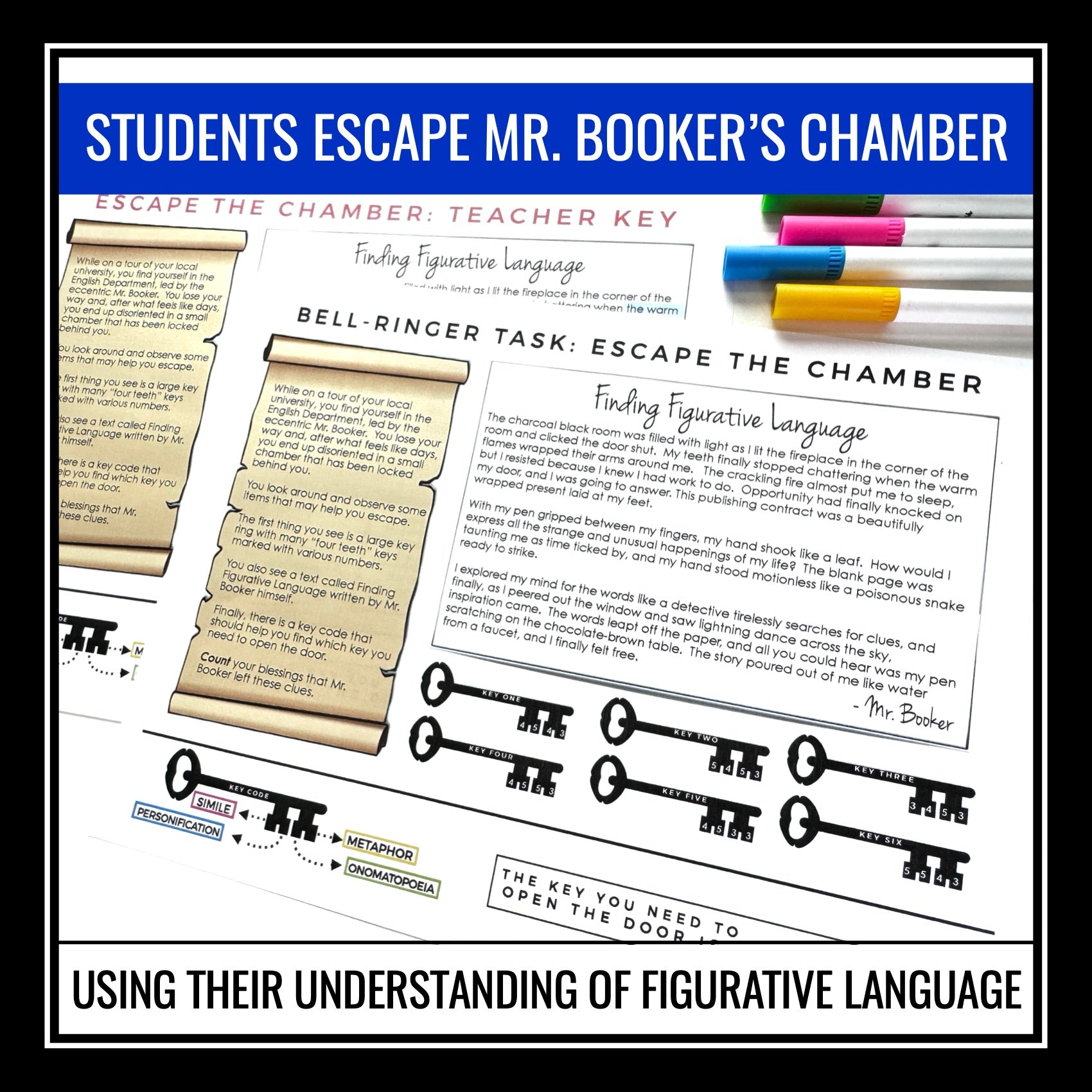 ➡️ Figurative Language Escape Challenge Background Story: Use this back story to set up the escape challenge. Students are on a university tour and find themselves locked in a chamber by the eccentric Professor Booker. They need to use their knowledge of literary devices to escape.