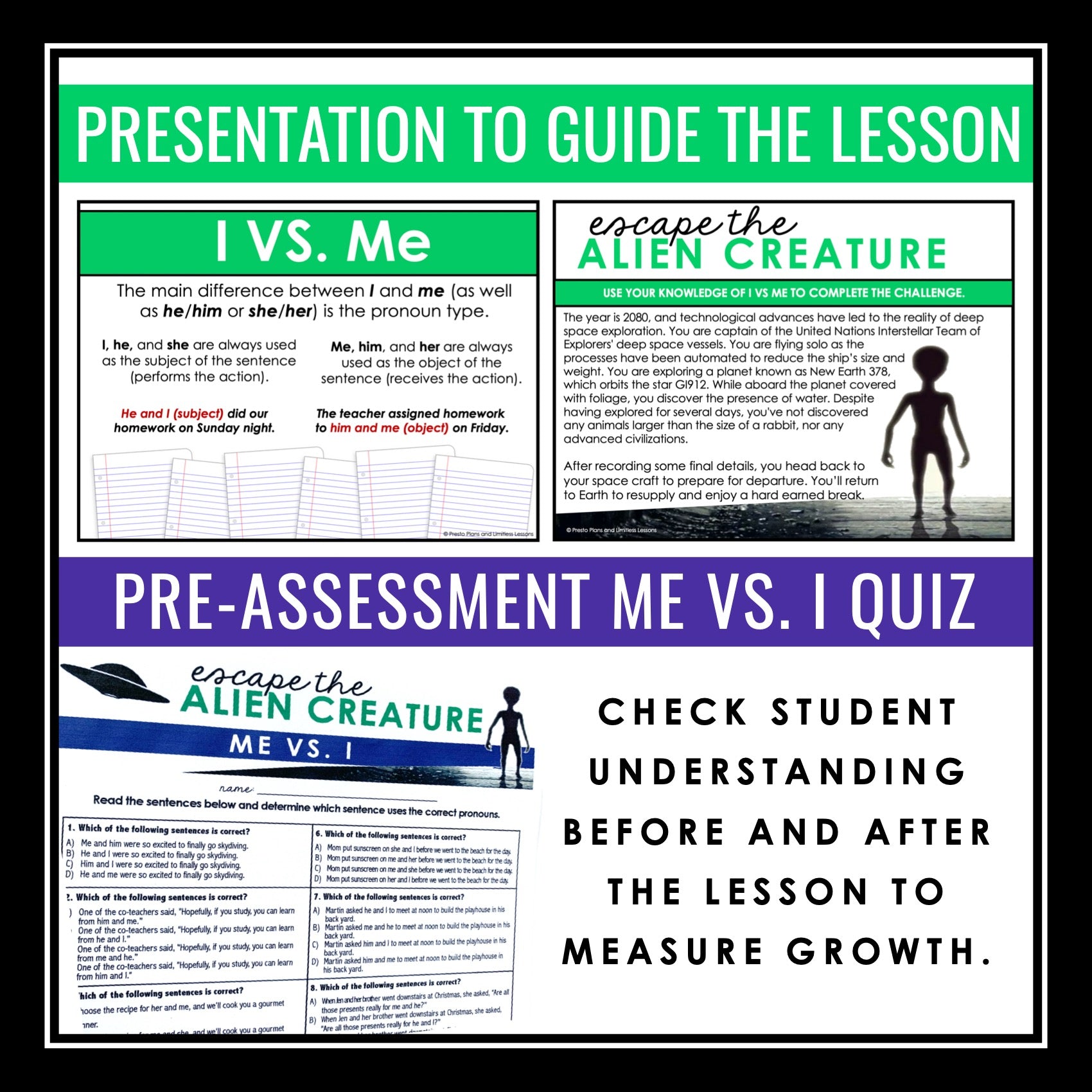 • Start by assigning the quiz to check your students’ understanding of me vs. I pronoun rules before you begin the lesson.