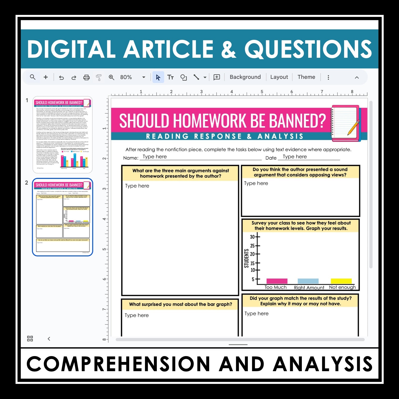 Included in This Digital Banning Homework Nonfiction Article and Activities Resource:
