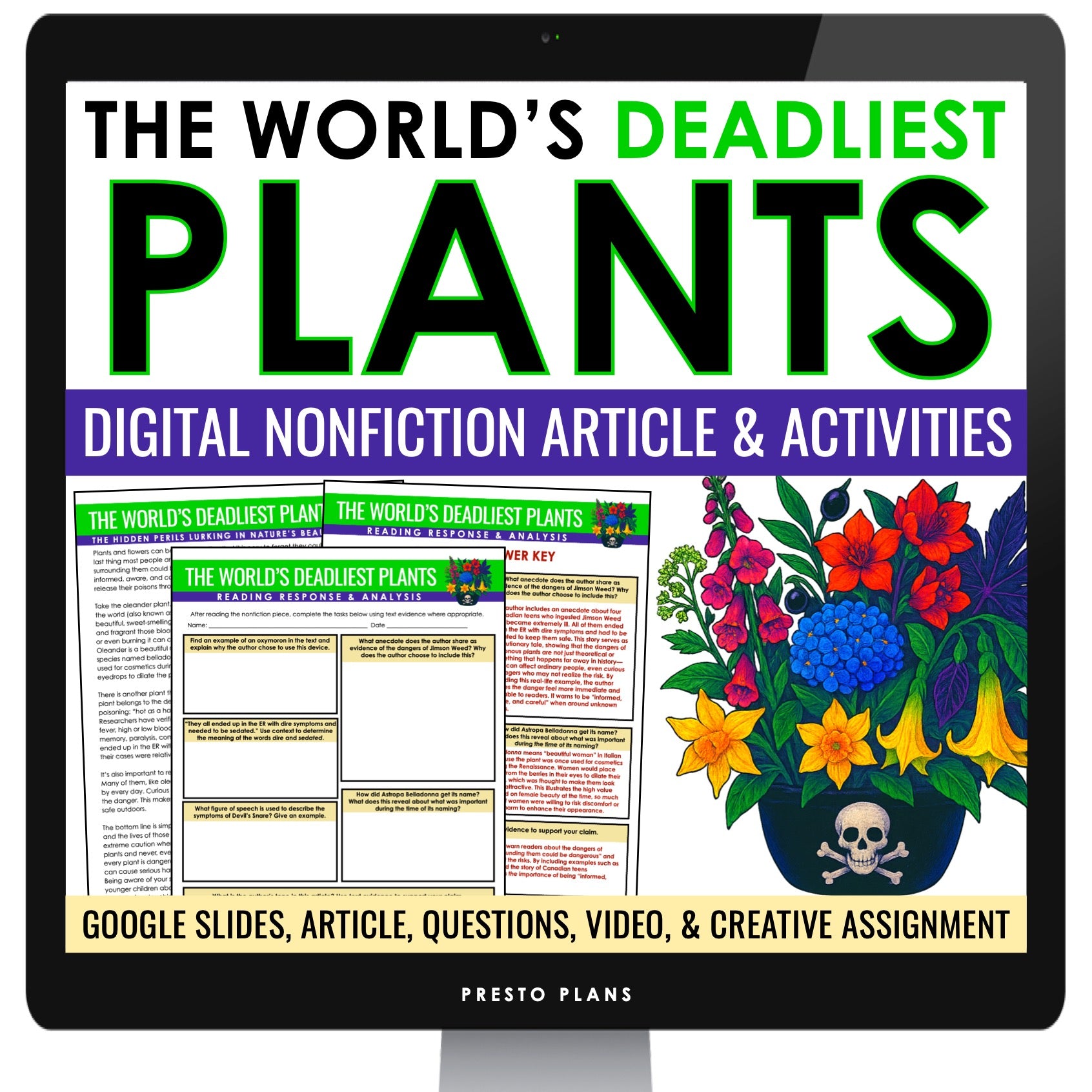 Included in This Digital Deadliest Plants Nonfiction Reading Comprehension Article and Activities Resource: