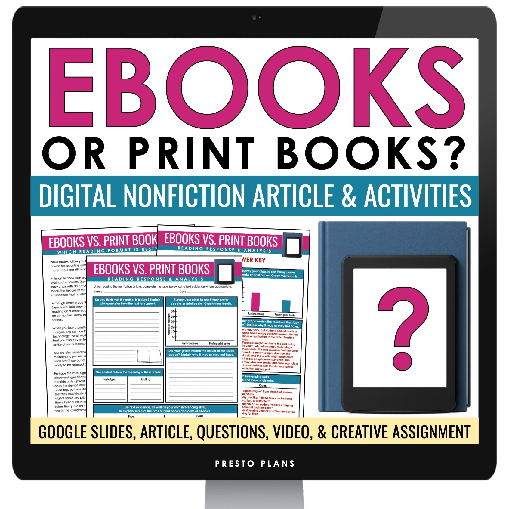 Included in This Digital Ebooks vs. Print Books Nonfiction Reading Comprehension Article and Activities Resource: