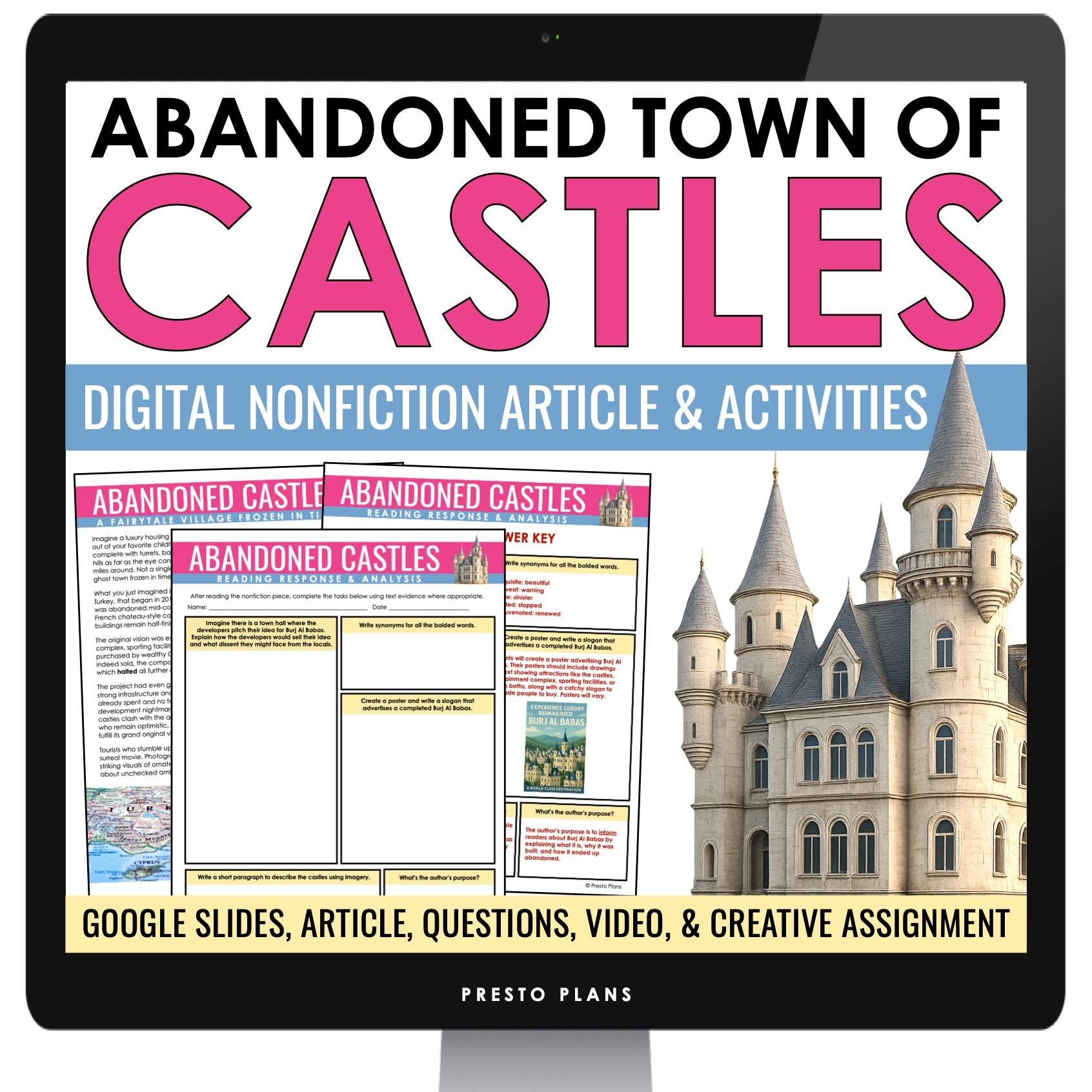 Nonfiction Reading Comprehension Digital Article & Activities Abandoned Castles