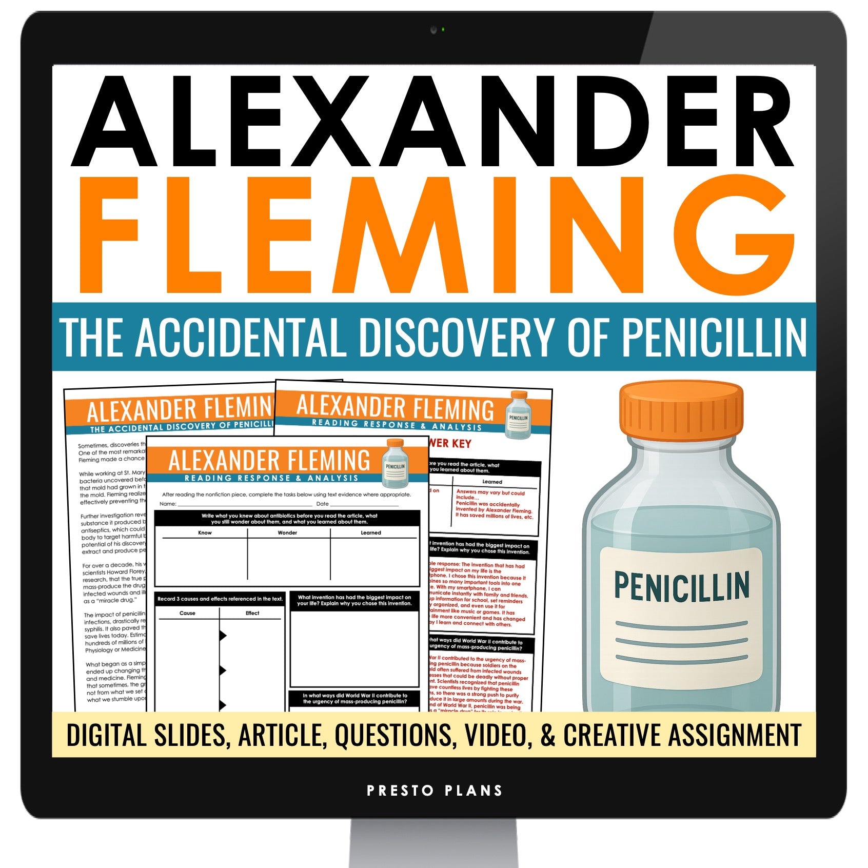 ➡️ Alexander Fleming Nonfiction Article: Engage your students in an original digital nonfiction article about Alexander Fleming, a scientist who accidentally founded the antibiotic penicillin. This informative piece provides a foundation for in-depth discussions and critical analysis.