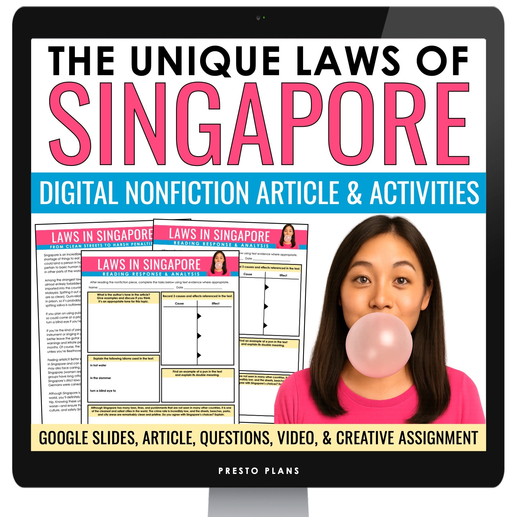 Nonfiction Reading Comprehension Digital Article and Activities - Singapore Laws