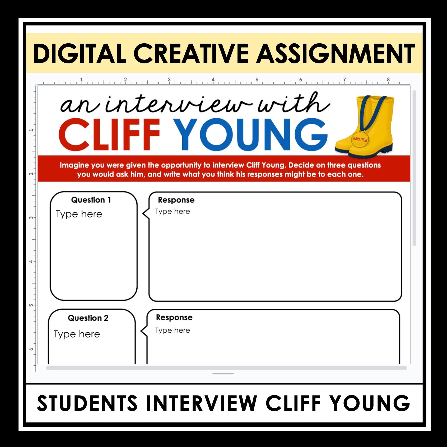 ➡️ An Interview with Cliff Young Digital Creative Response Assignment: Foster creativity and critical thinking skills with this engaging digital assignment. Students imagine they have the opportunity to interview Cliff Young. They will develop questions and imagined responses for Cliff about his experience with this ready-to-use template.