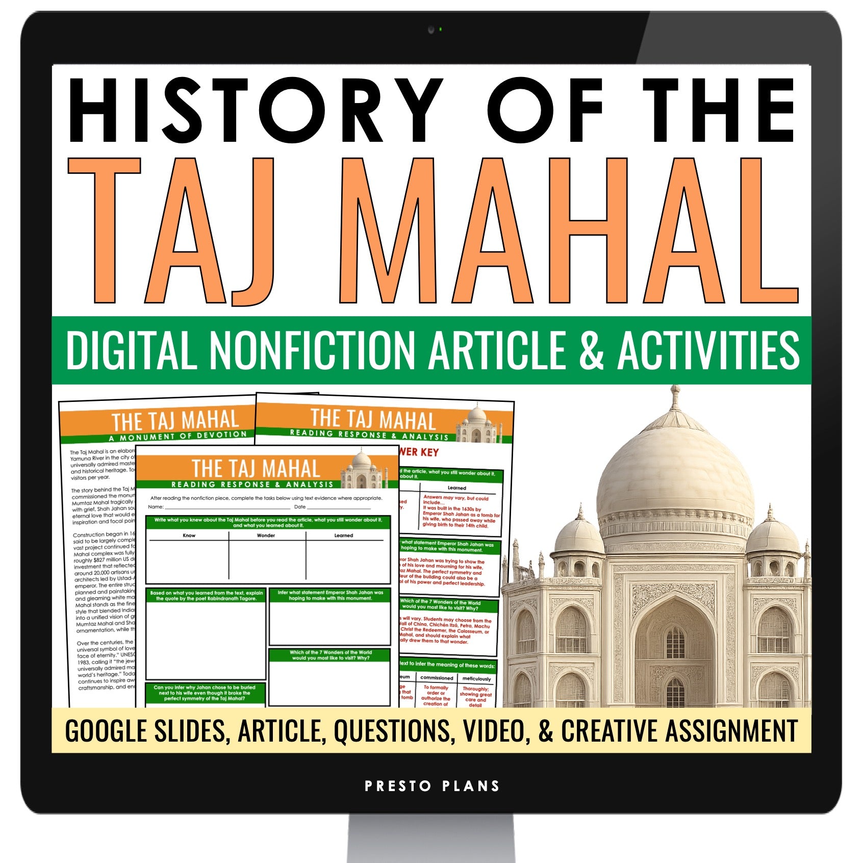 ➡️ Taj Mahal Nonfiction Article: Engage your students in an original digital nonfiction article about the famous Taj Mahal. This informative piece provides a foundation for in-depth discussions, reading comprehension, and critical analysis.