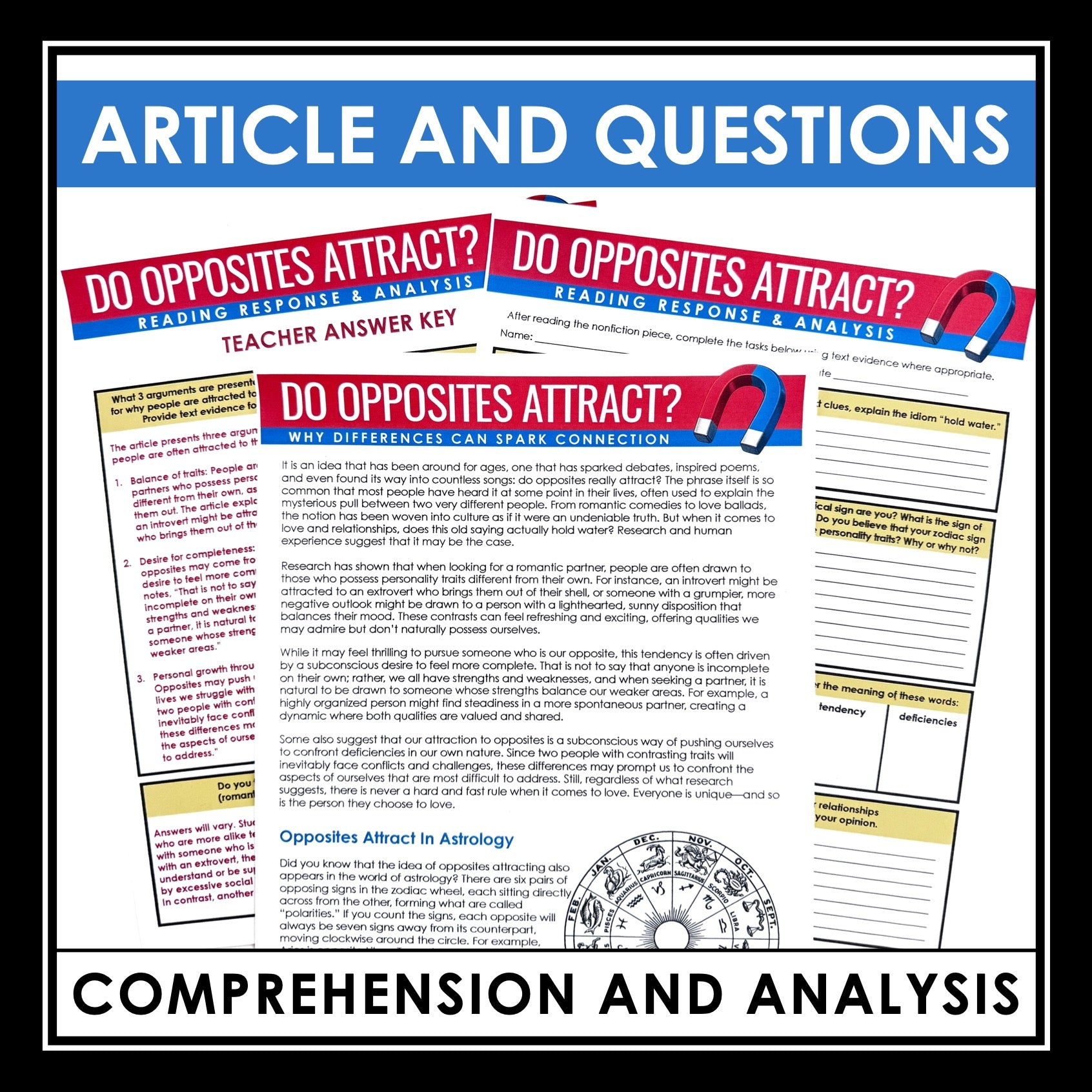 Nonfiction Reading Comprehension Article and Activities - Do Opposites Attract?