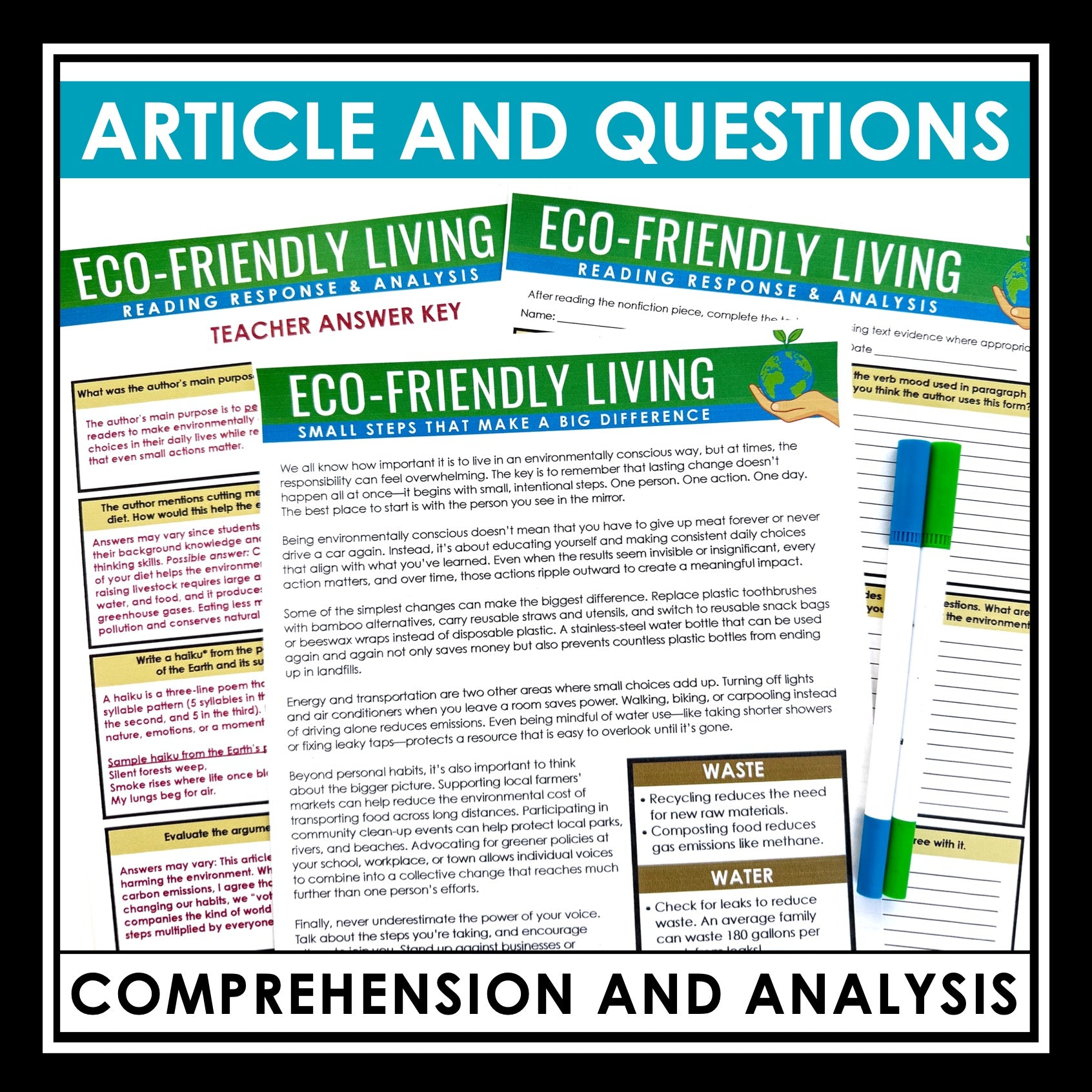 Included in This Eco-Friendly Living Nonfiction Reading Comprehension Article and Activities Resource: