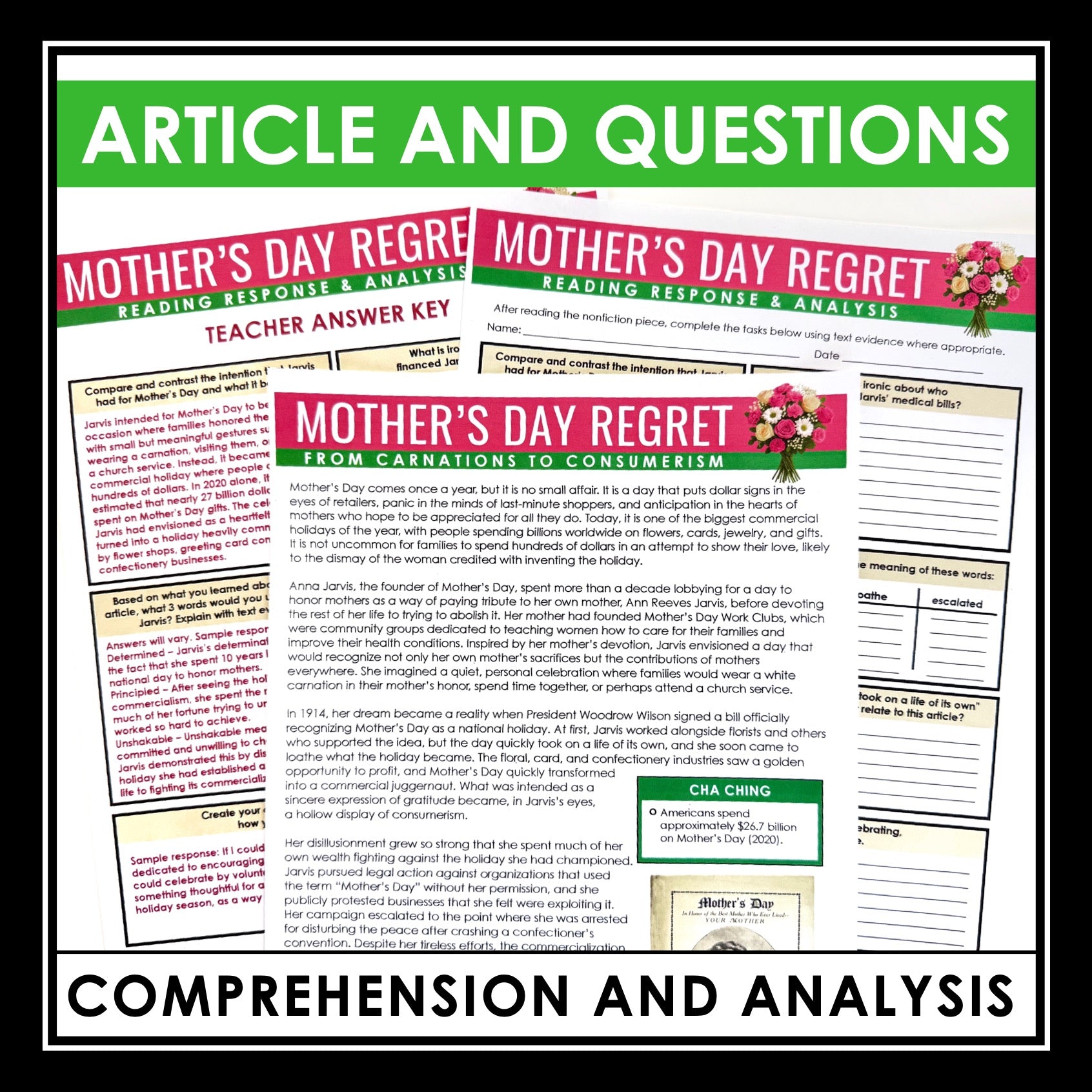 Included in This Mother's Day Regret Nonfiction Reading Comprehension Article and Activities Resource: