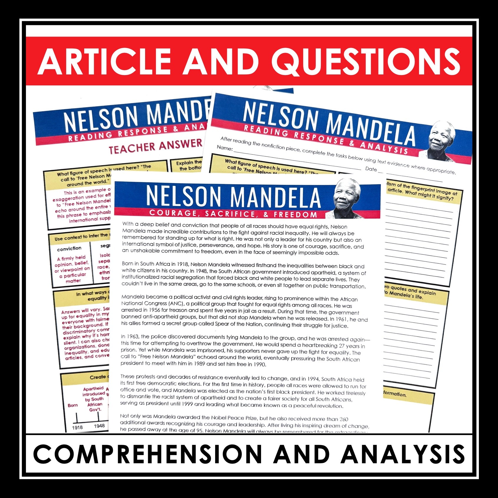 Nelson Mandela Nonfiction Reading Comprehension Article and Activities