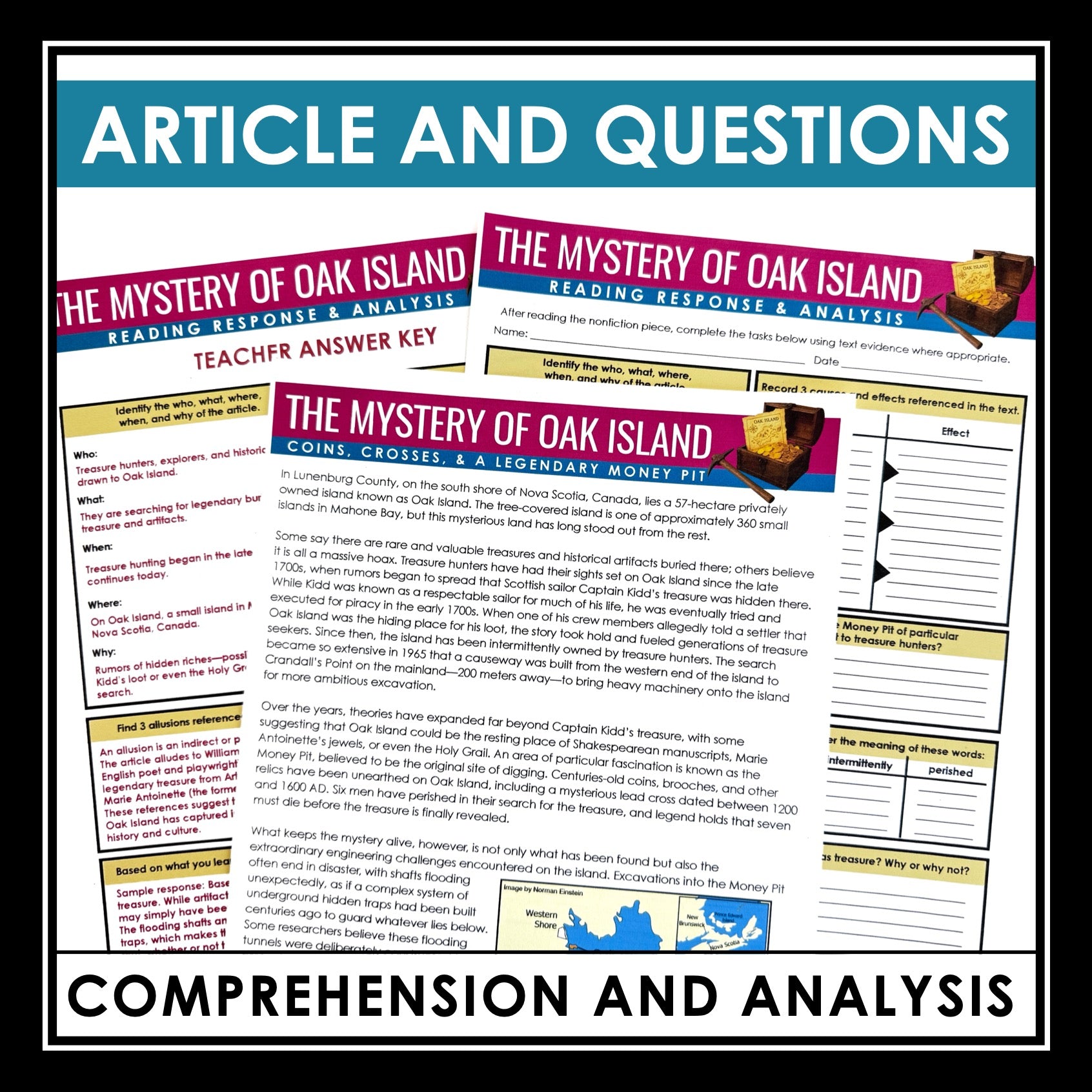 Included in This Oak Island Mystery Nonfiction Reading Comprehension Article and Activities Resource: