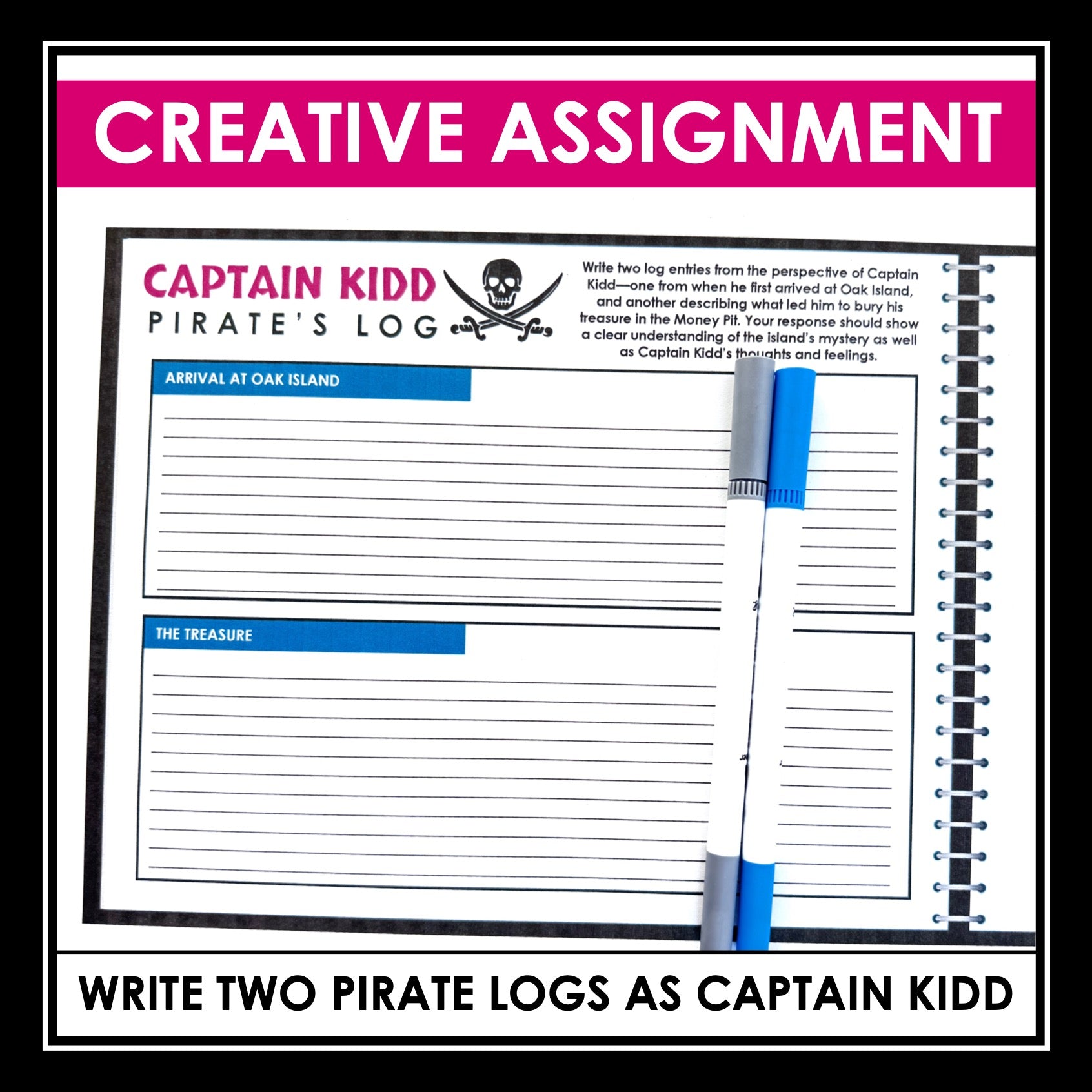 ➡️ Captain Kidd's Pirate Log Creative Response Assignment: Foster creativity and critical thinking skills with this engaging assignment where students must write two pirate’s log entries from the perspective of Captain Kidd from when he arrived at Oak Island. They will share what happened that made him bury his treasure there in the money pit using what they learned in the article.