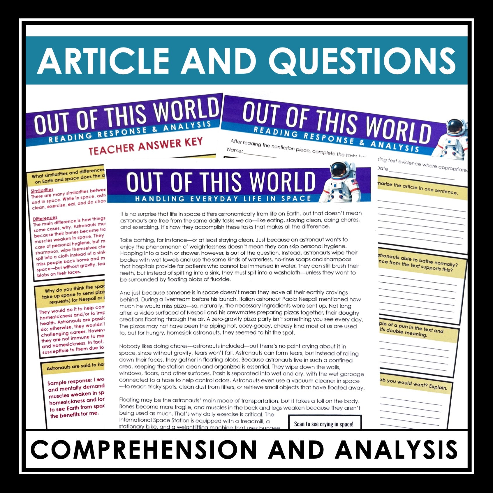 Included in This Life in Space Nonfiction Reading Comprehension Article and Activities Resource: