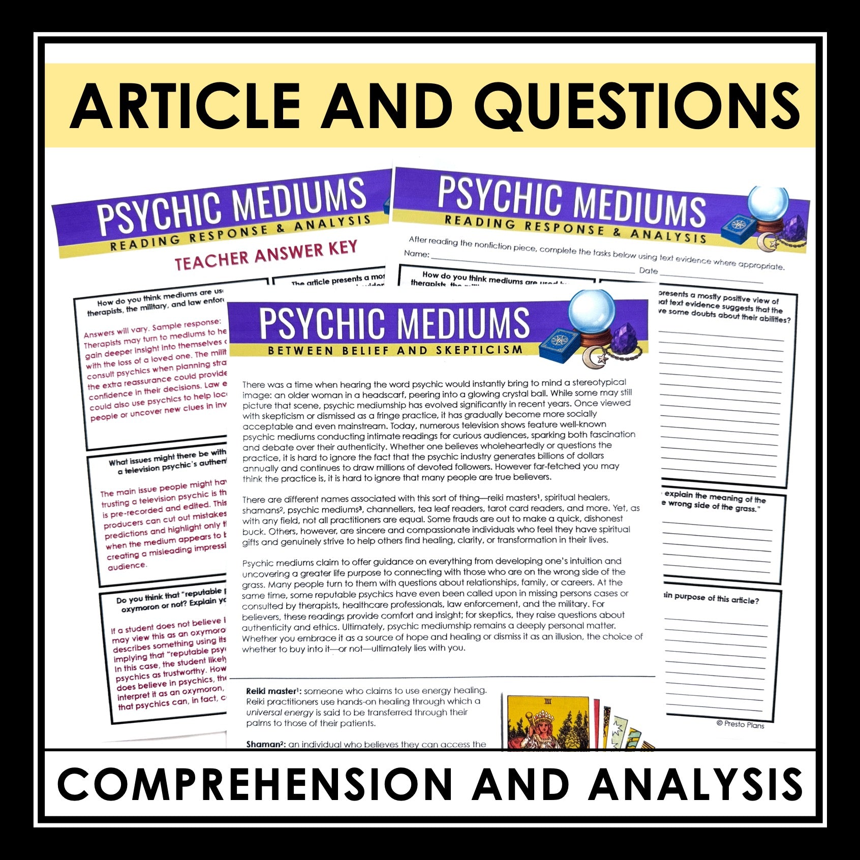 ➡️ Psychic Mediums Nonfiction Article: Engage your students in an original nonfiction article about psychic mediums. This informative piece provides a foundation for in-depth discussions, reading comprehension, and critical analysis.