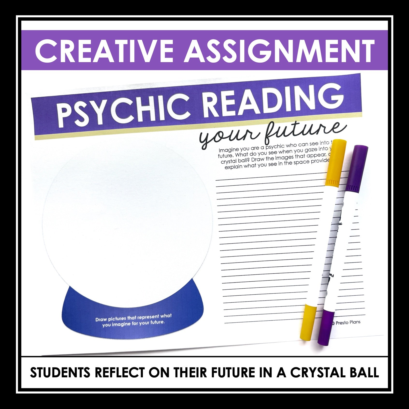 ➡️ Psychic Reading Your Future Creative Response Assignment: Foster creativity and critical thinking skills with this engaging assignment. Students must imagine they are a psychic who can see their own future. They will draw their future in a crystal ball and describe what they see.