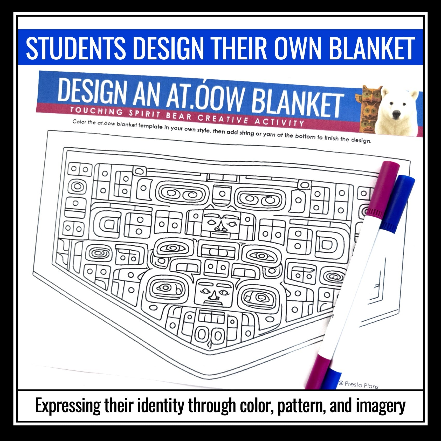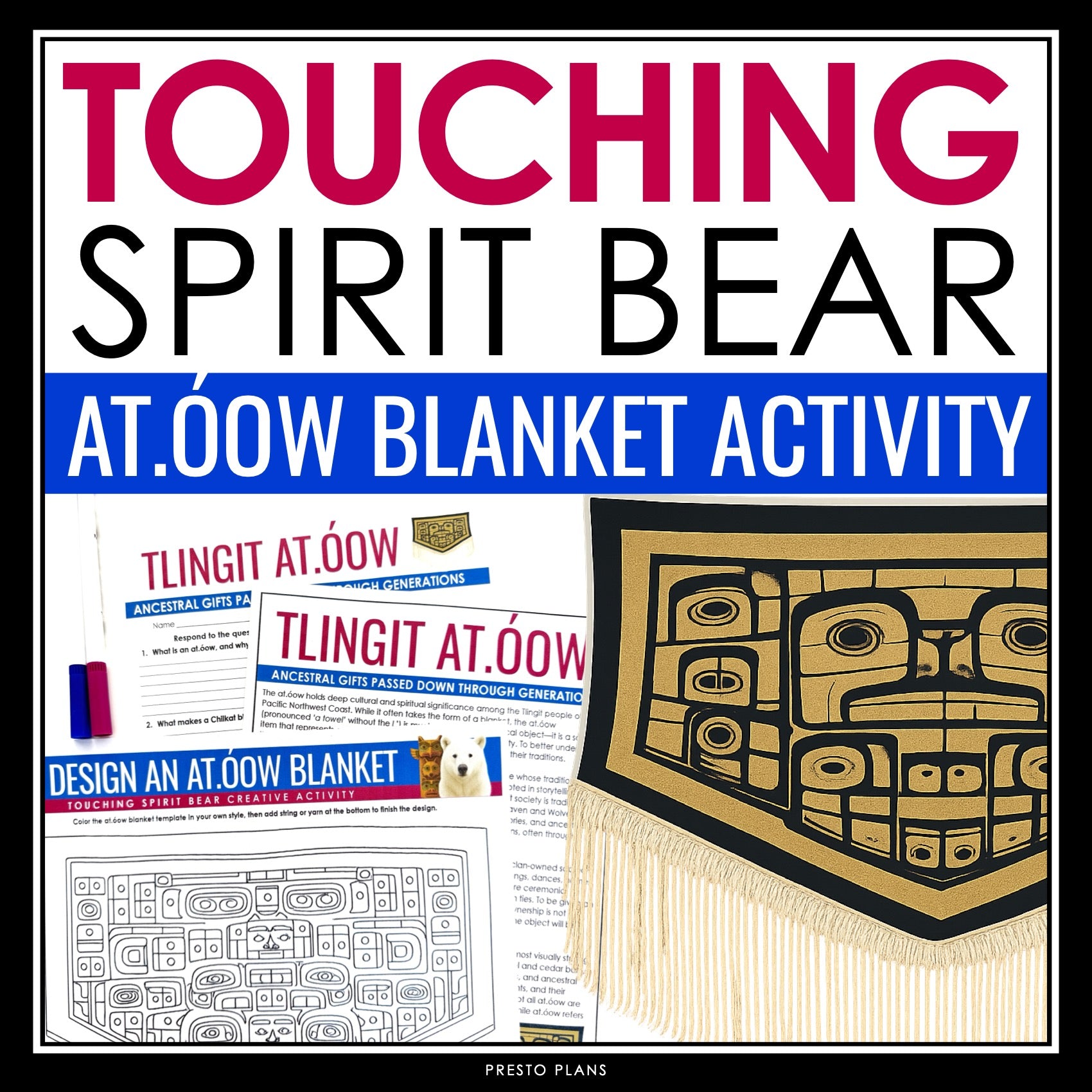 Touching Spirit Bear - At.óow Blanket Nonfiction Article & Creative Activity: In Ben Mikaelsen’s novel, the at.óow blanket Garvey gives to Cole carries deep symbolic meaning connected to trust, responsibility, and ancestry. This resource helps students understand the cultural significance of the at.óow in Tlingit tradition through nonfiction reading and questions, then apply that understanding with a hands-on creative activity where they design their own blanket.