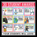 ➡️ Most Likely to Student Awards List: A list with the name of each student award is included. This will make it easy for you to assign the awards to each student! You may also distribute this to students to have them vote for which students should receive which award to help you with your selection.