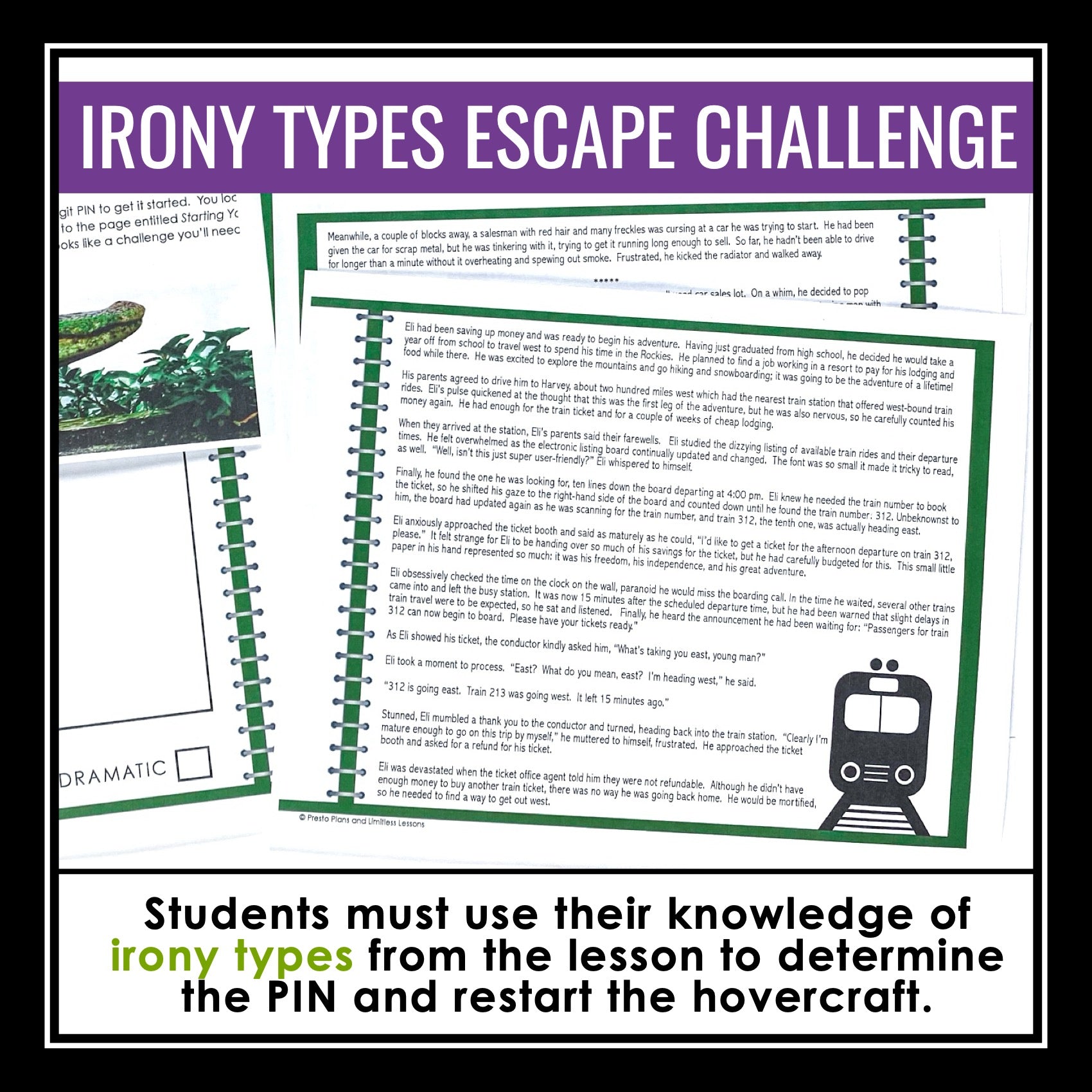 Irony Presentation & Verbal, Dramatic, Situational Escape Room Reading Activity