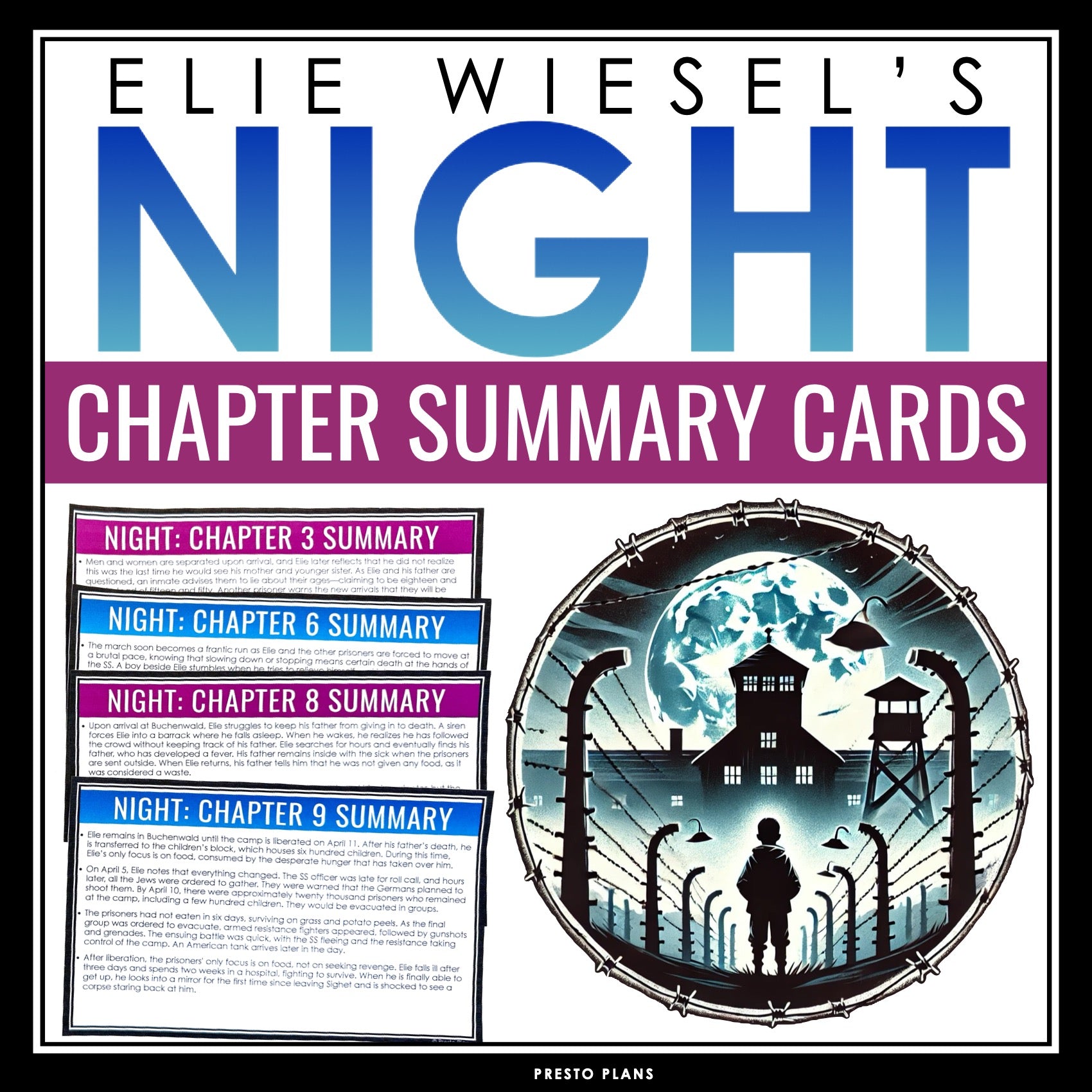 Night Chapter Summaries - Plot Summary Cards for Elie Wiesel's Novel Memoir