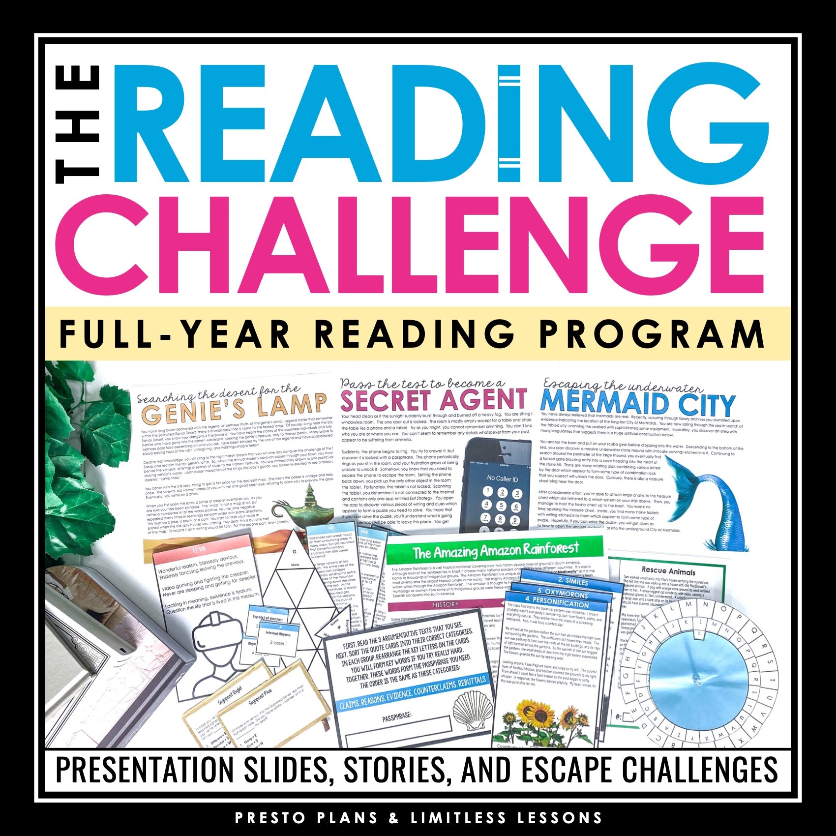 ➡️ 40 Escape Room Reading Game Challenges: After teaching the reading concepts, students are ready to tackle the interactive escape-room style challenges. They must use their newly acquired analysis or reading skills to solve puzzles and progress through the challenge.