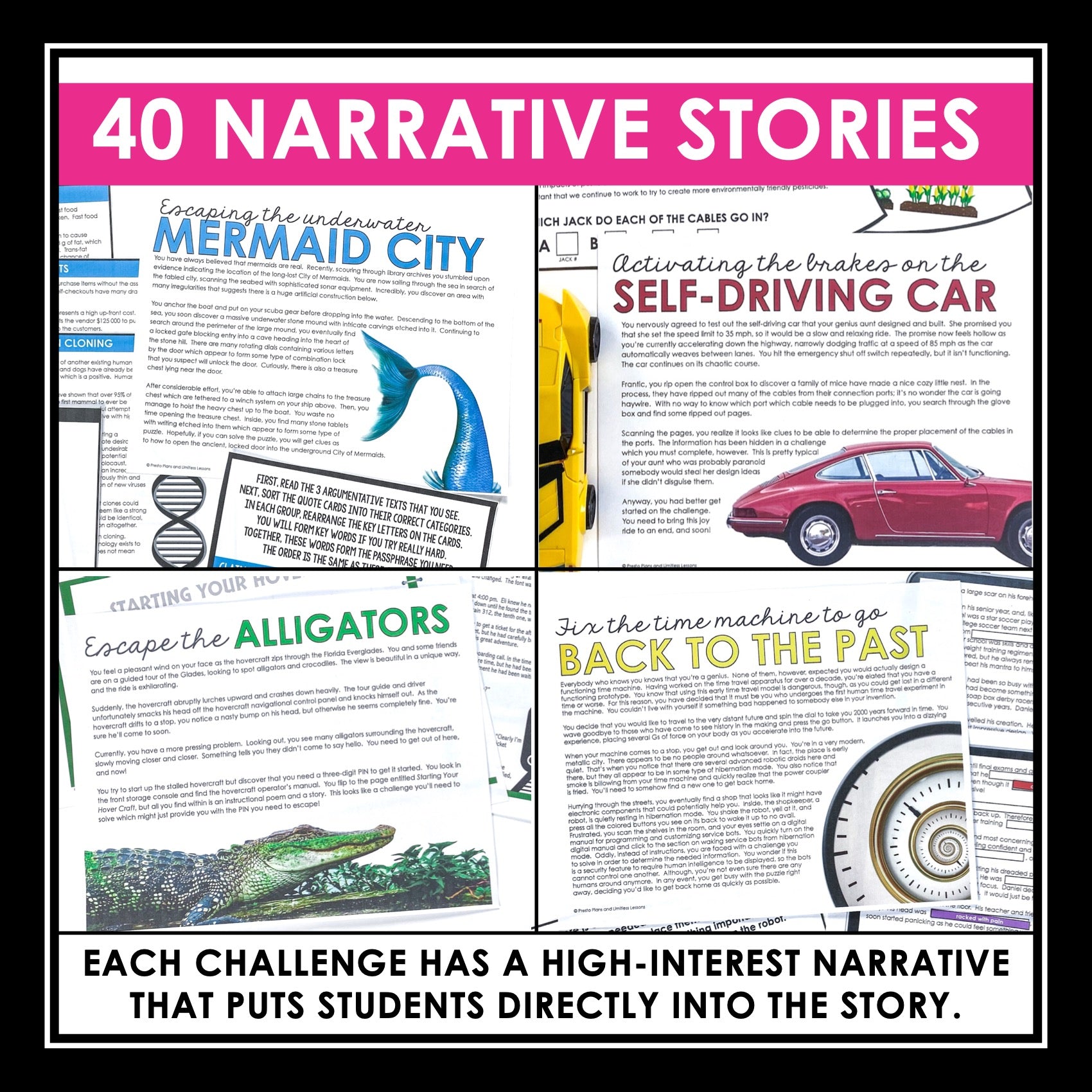 ➡️ 40 Narrative Stories: Engage your students with original narrative stories that put them in the middle of an exciting scenario related to the reading concept. Reading the story as a class hooks students and sets up the accompanying challenge.