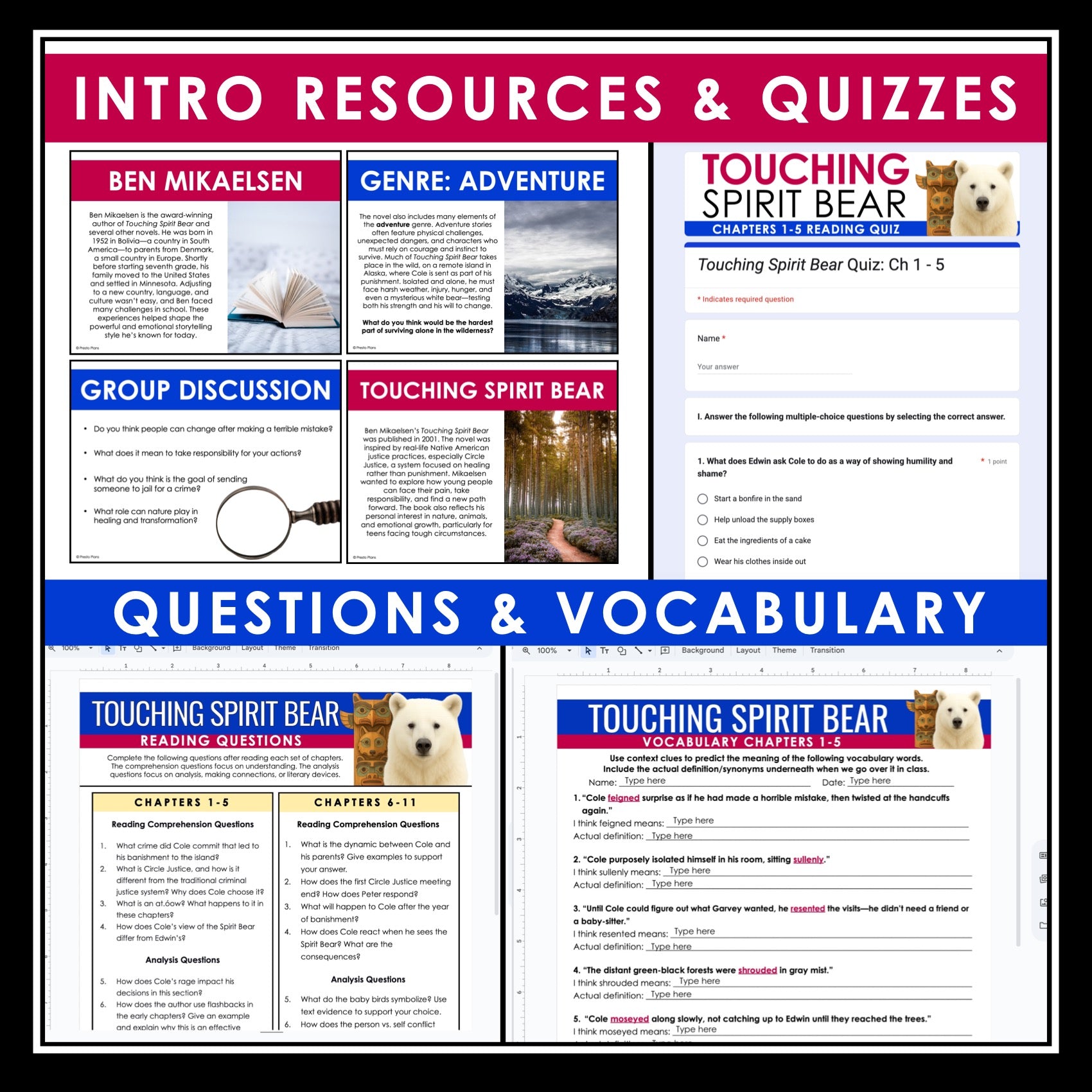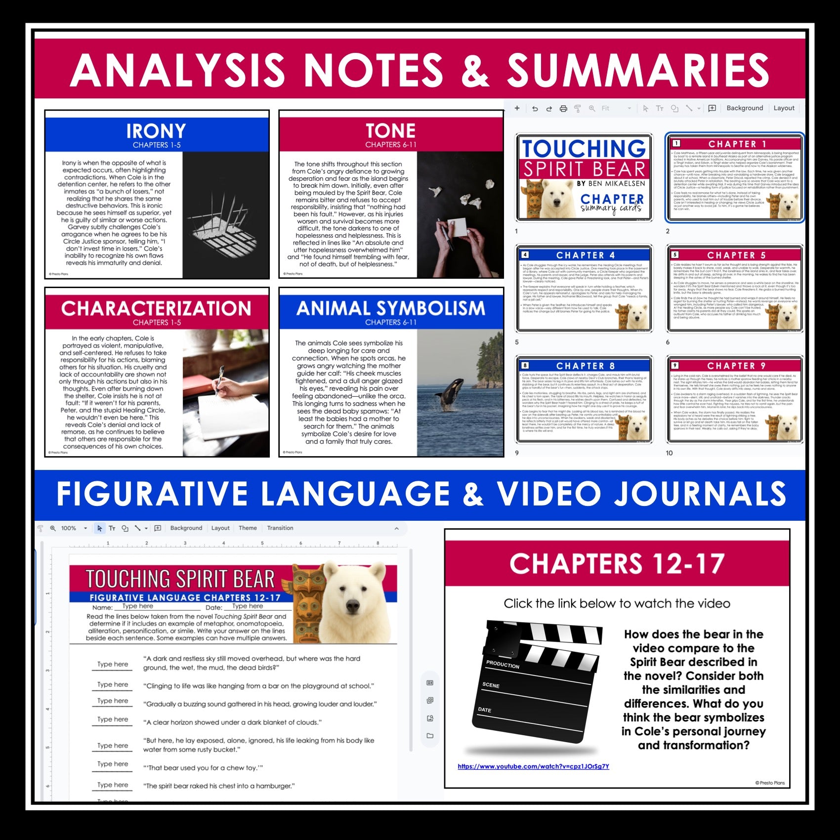➡️ Touching Spirit Bear Questions and Answers: Guide students through the novel with a mix of comprehension and analysis questions organized by chapter section. The Google Slides resource includes a student reference page, student response pages, and a presentation with evidence-based answers to support individual or group review.